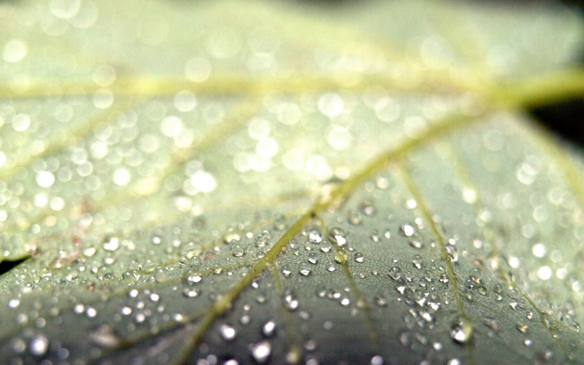 Dew drops in an enlarged leaf