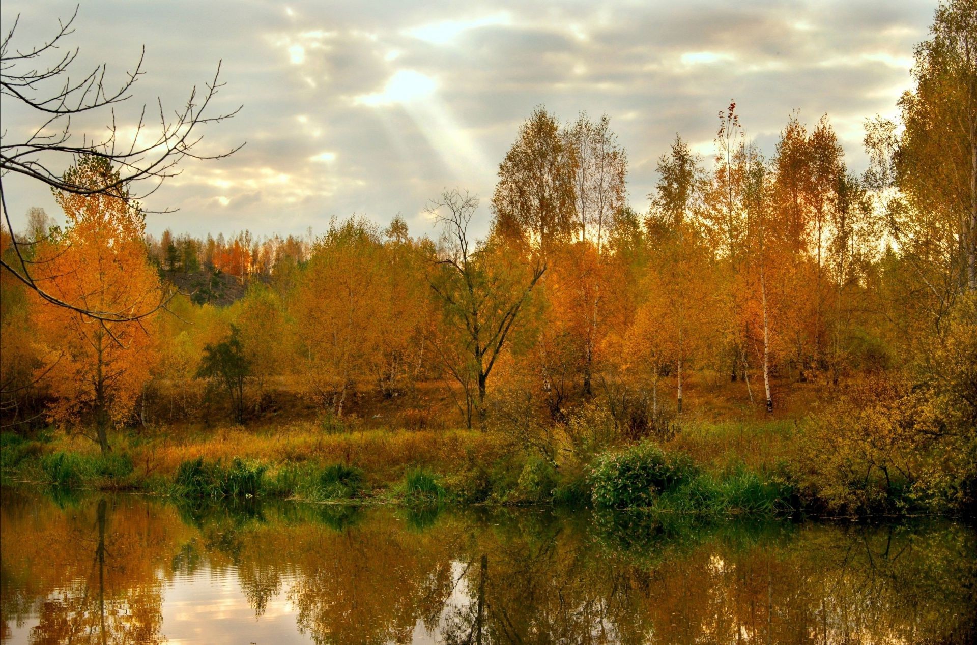 Landscape of coniferous trees whose roots are strewn with fallen leaves