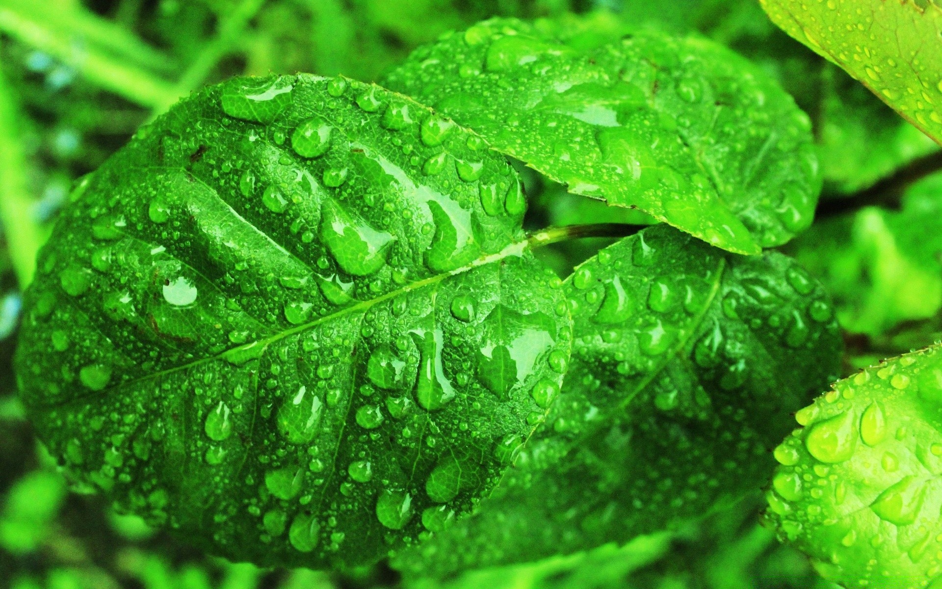 Green leaves in dew