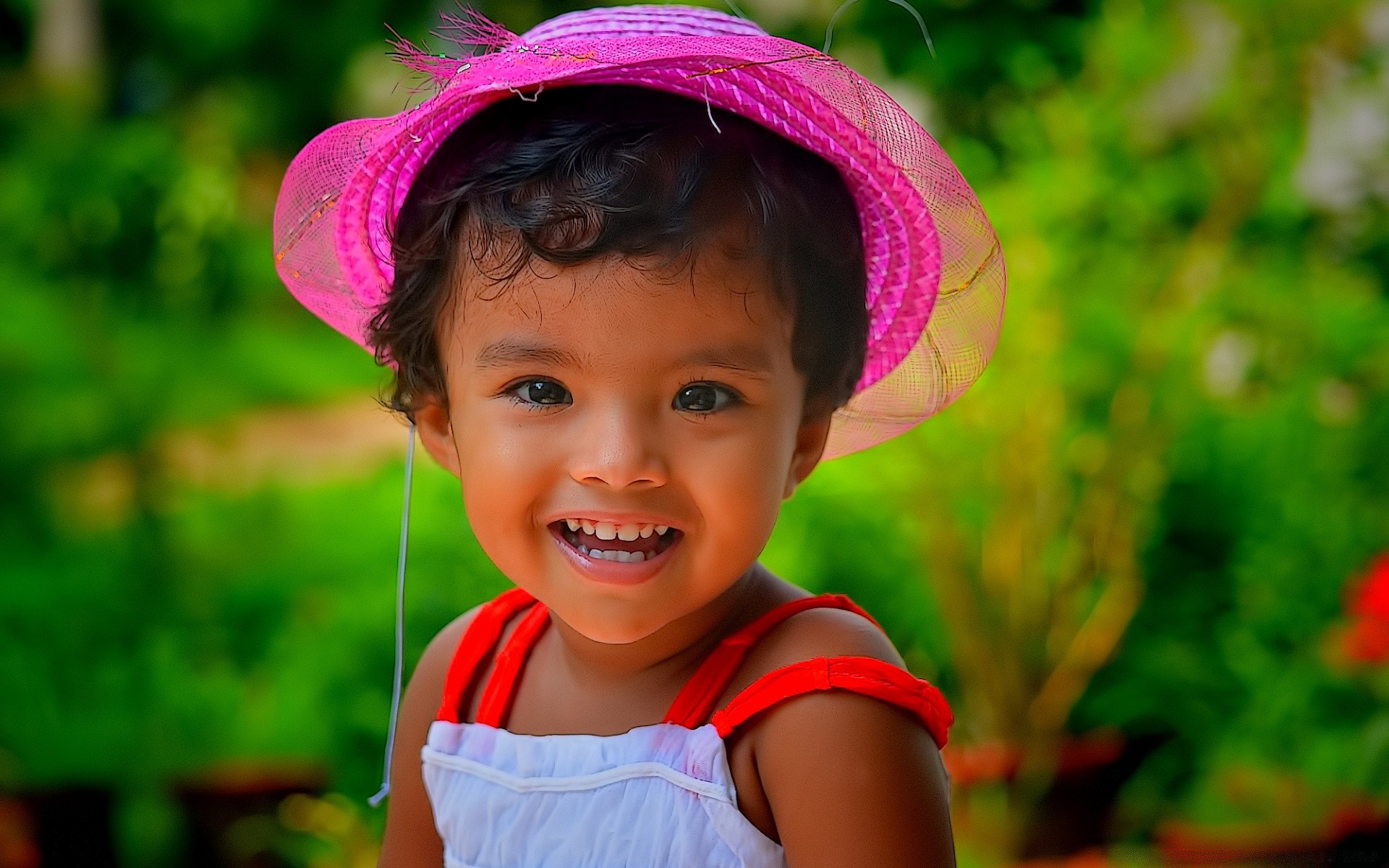 Cute girl in a pink hat