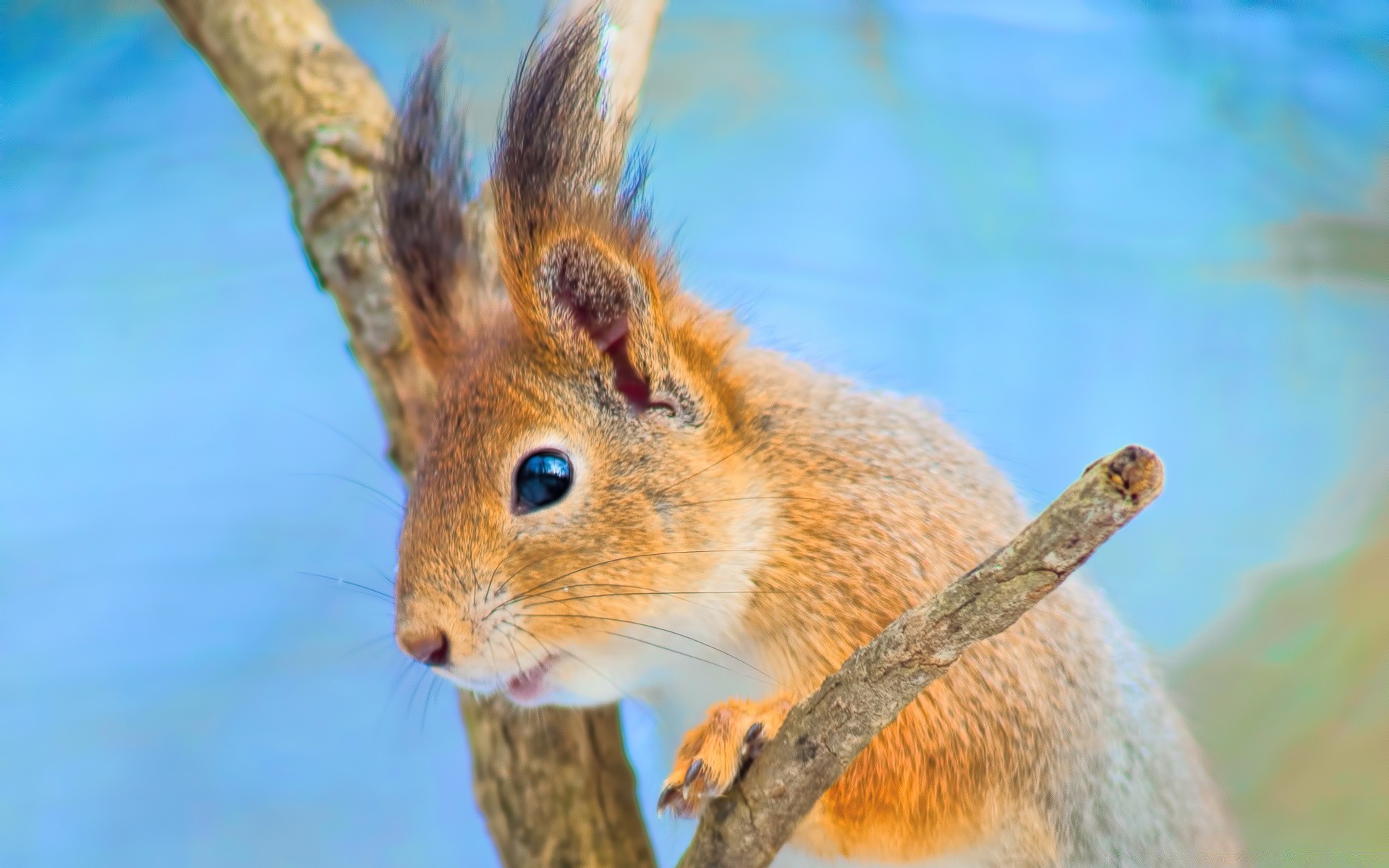 The squirrel is clearly interested in something