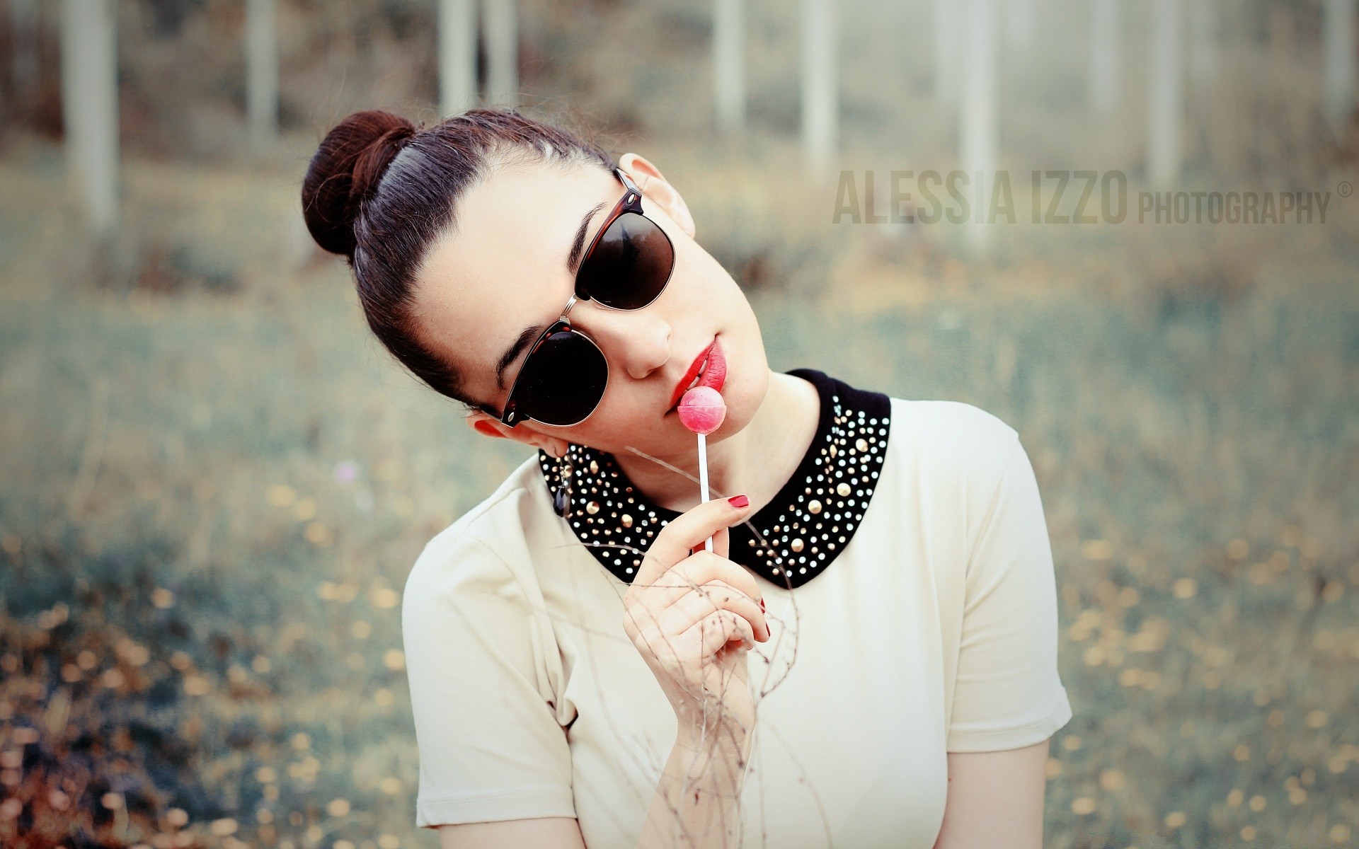A girl in a wide-brimmed red panama hat and a blue swimsuit is sitting on a metal chaise longue in front of a wooden fence