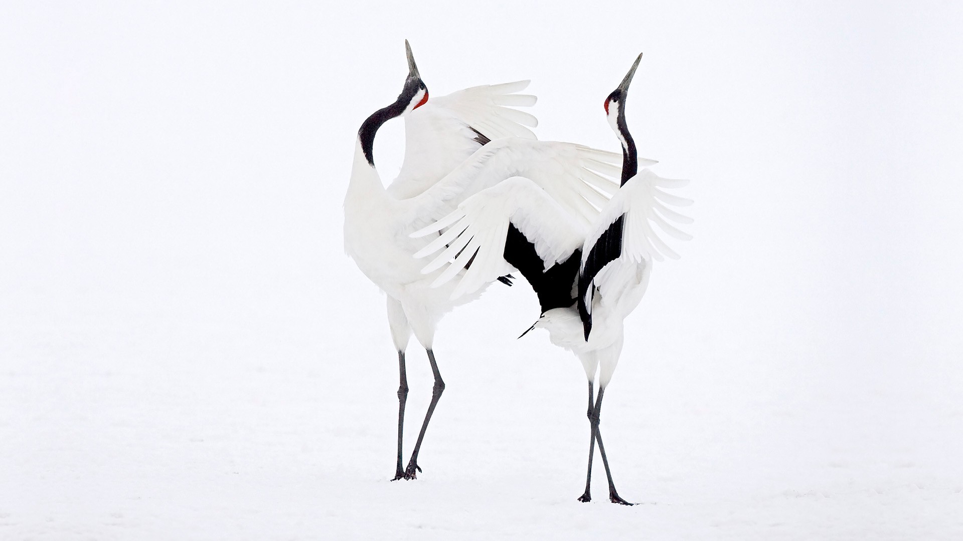 Magnificent storks in a love dance