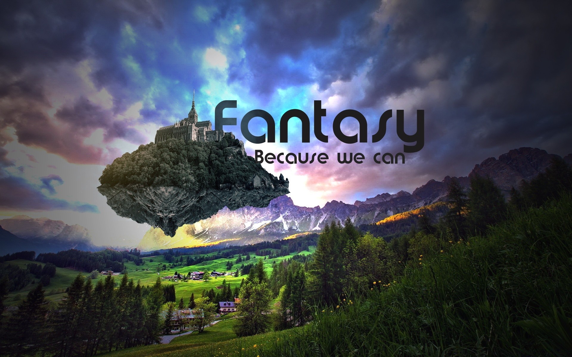 Fantasy creative, settlement among hills and forestsFantasy creative, settlement among hills and forests