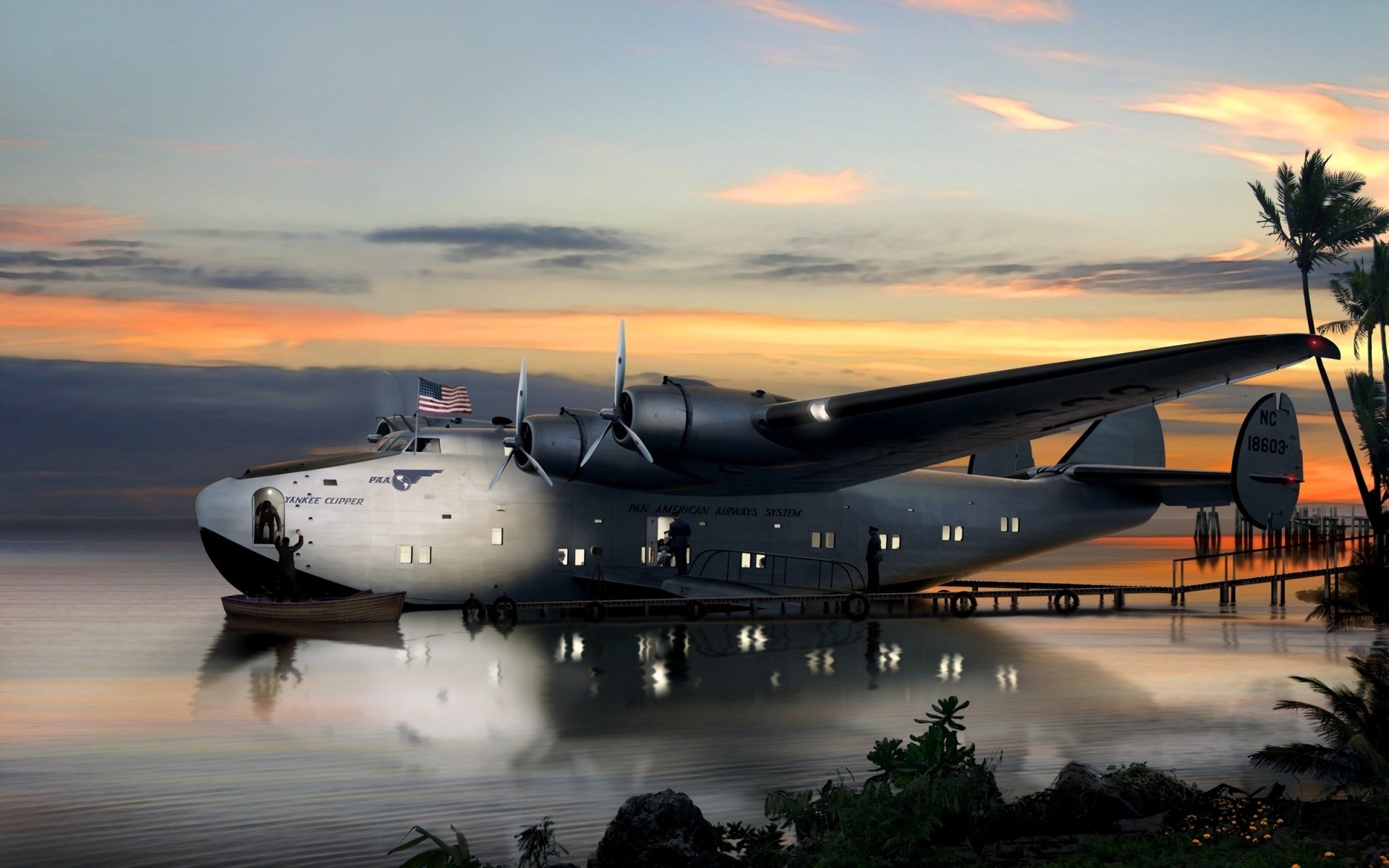 A small island with a bunch of palm trees in the endless seaA small island with a bunch of palm trees in the endless sea