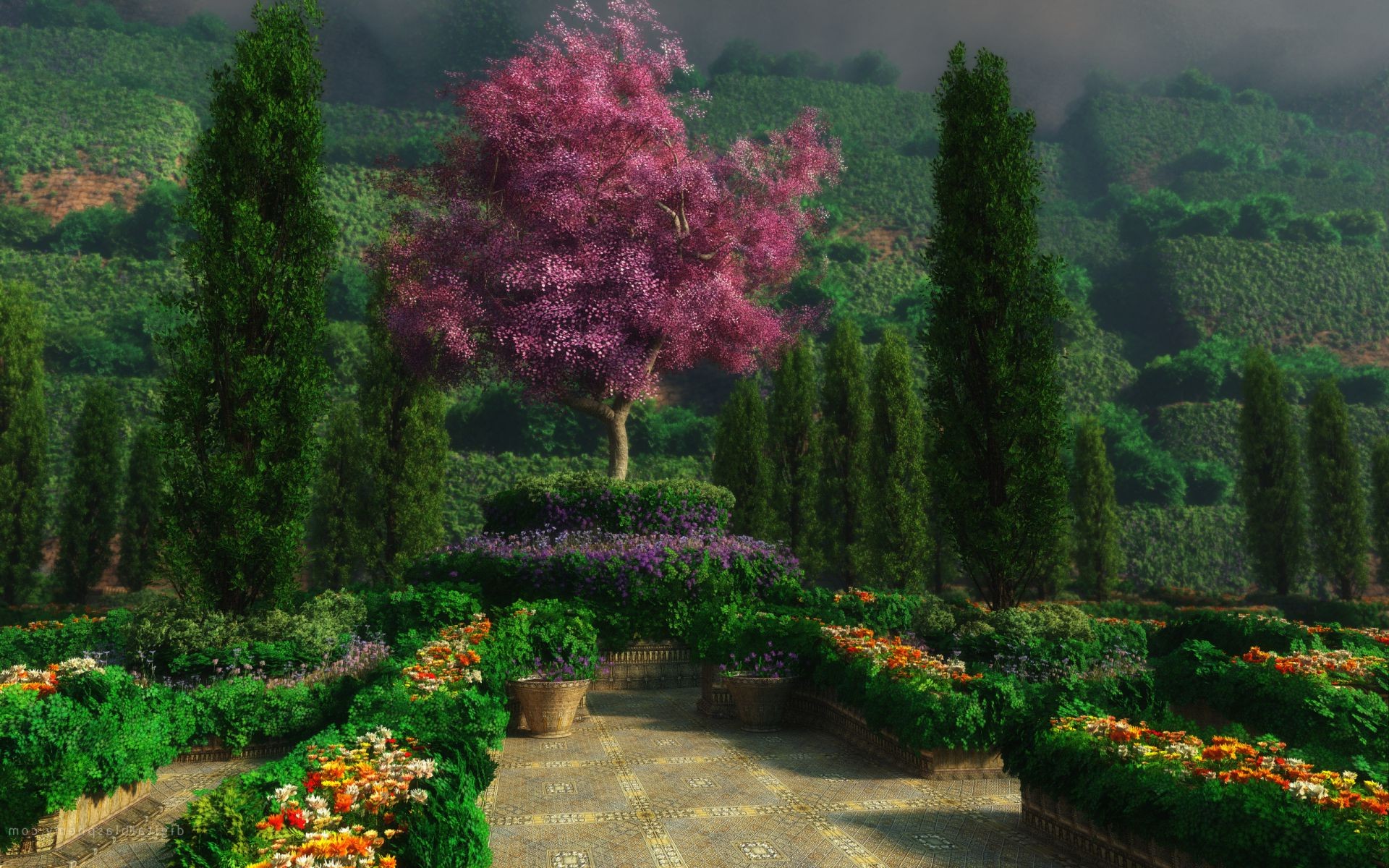 Green garden with a maze
