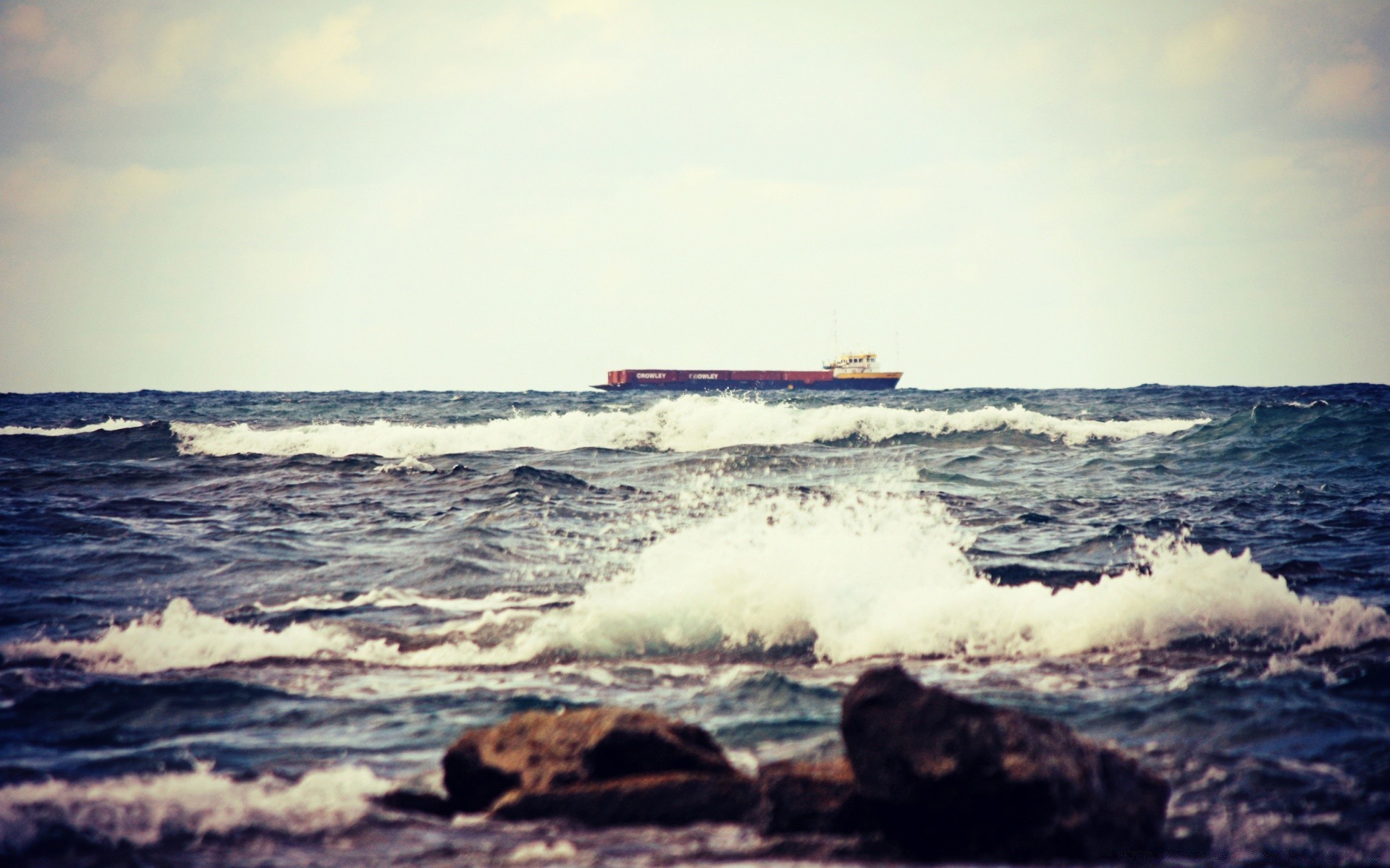 The mighty ocean hits the shore with a wave, the wind walks freely. How much water is there