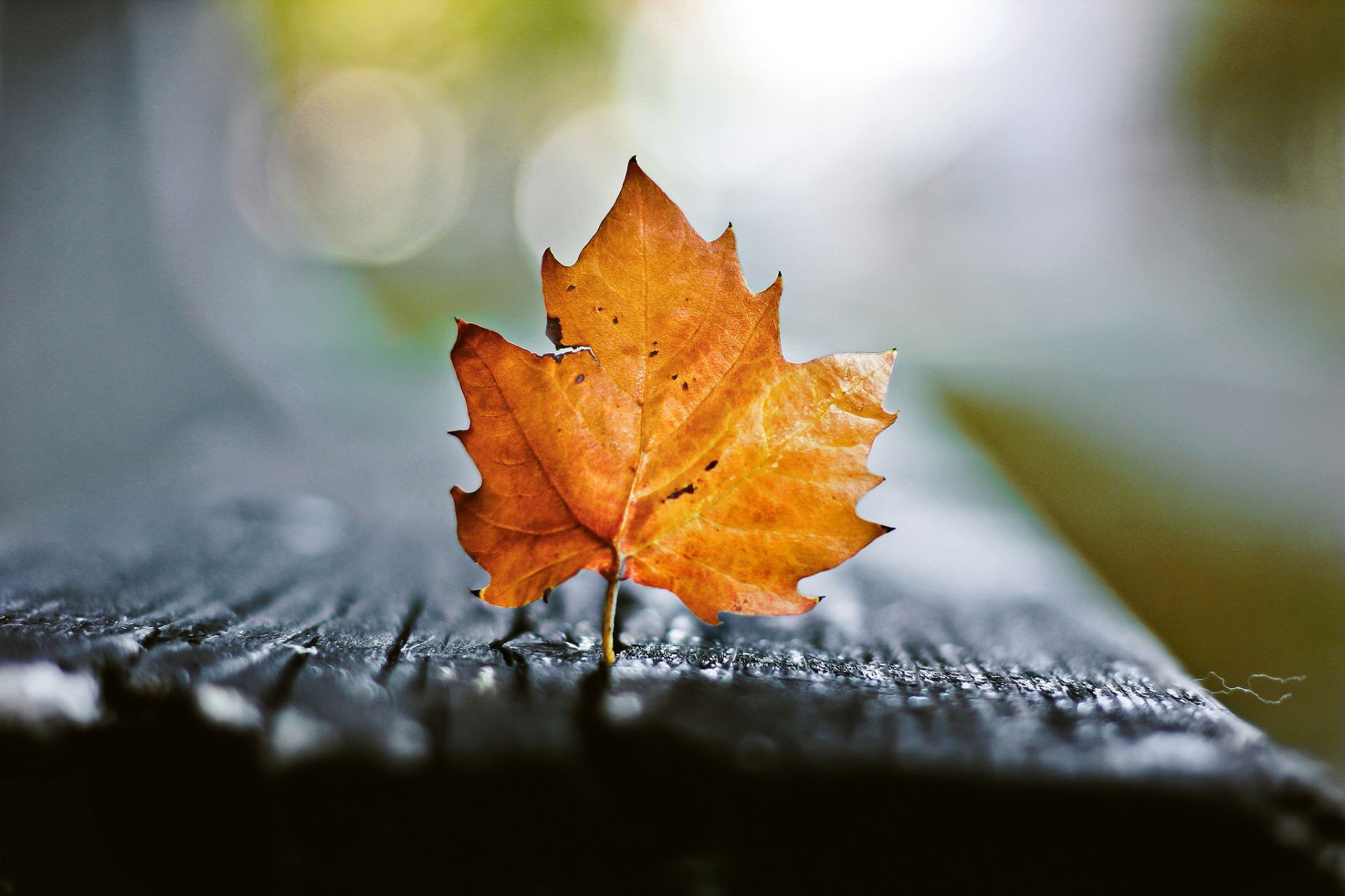 A maple leaf fell on the bench