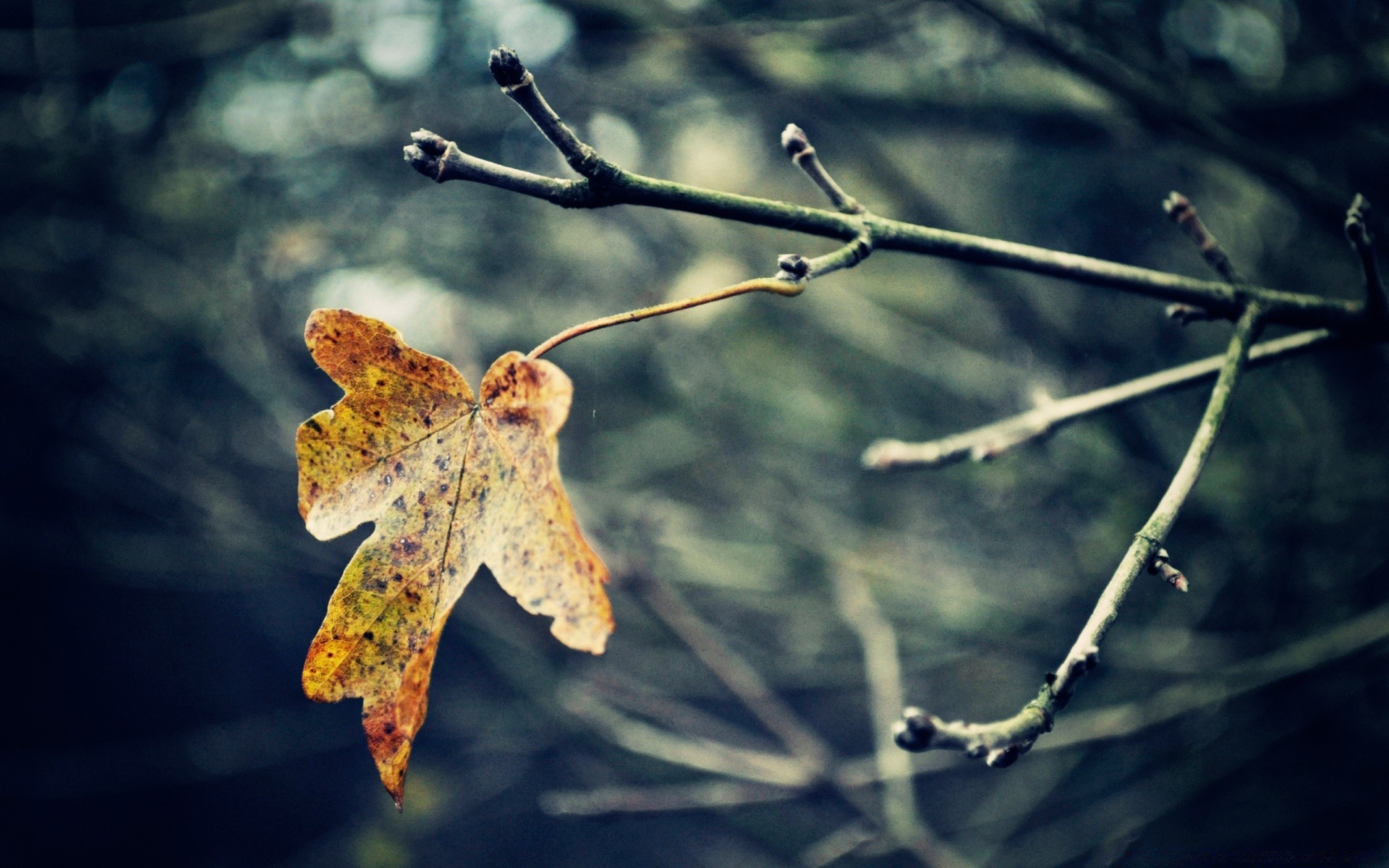 Sad lonely autumn leaf