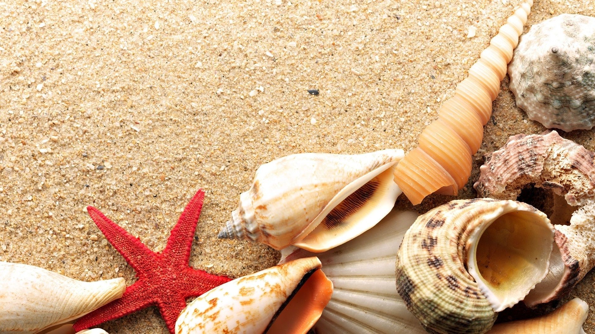 Collection of seashells on a sandy beach