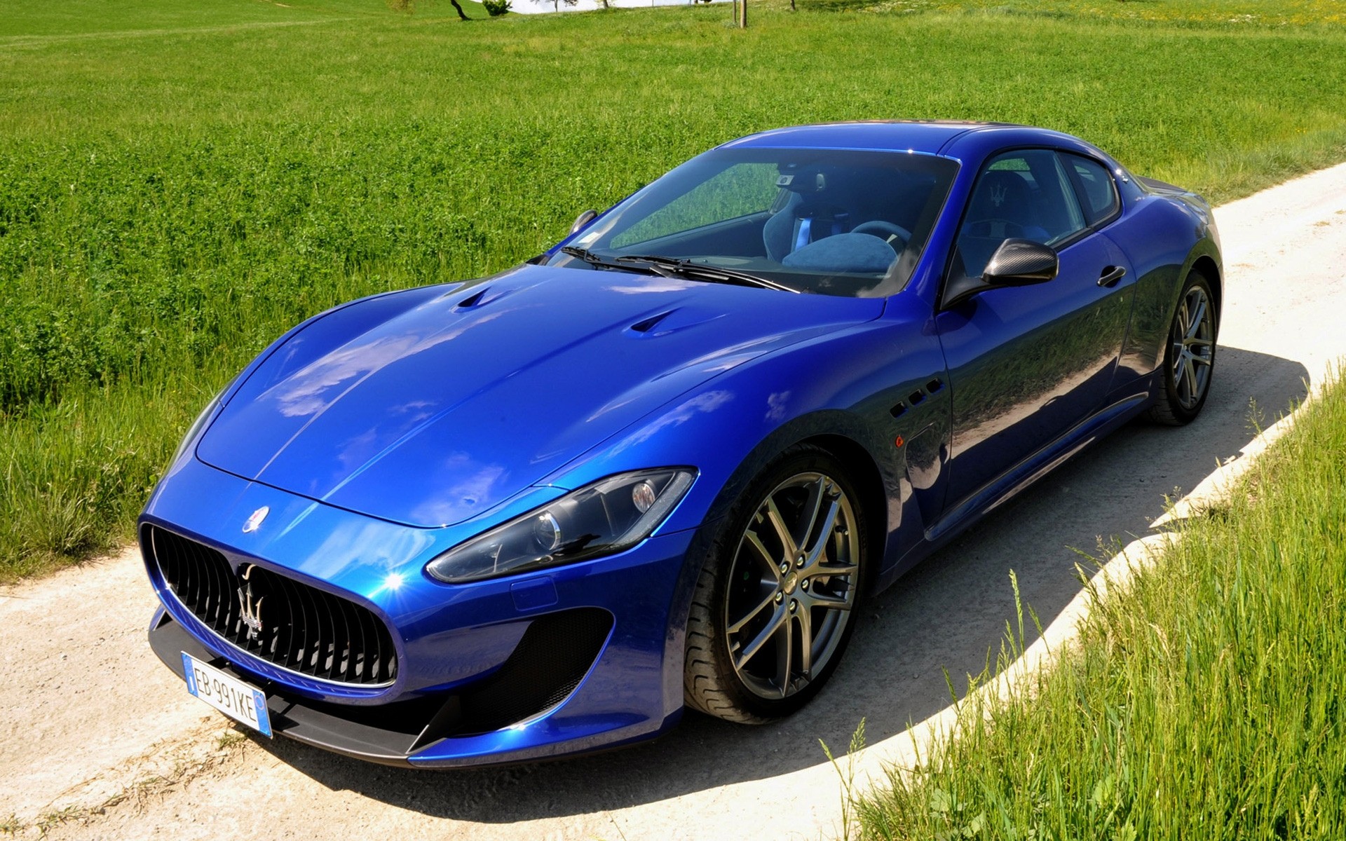 Blue Maserati on the field background