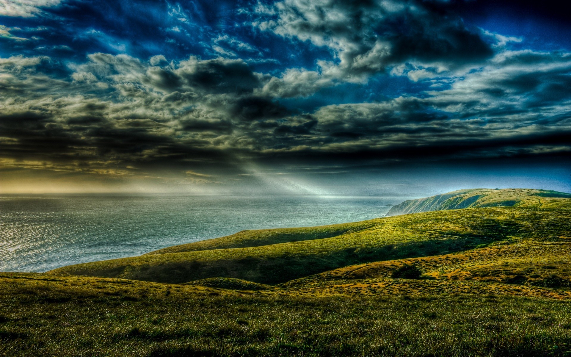 Meadow and shore before a thunderstorm