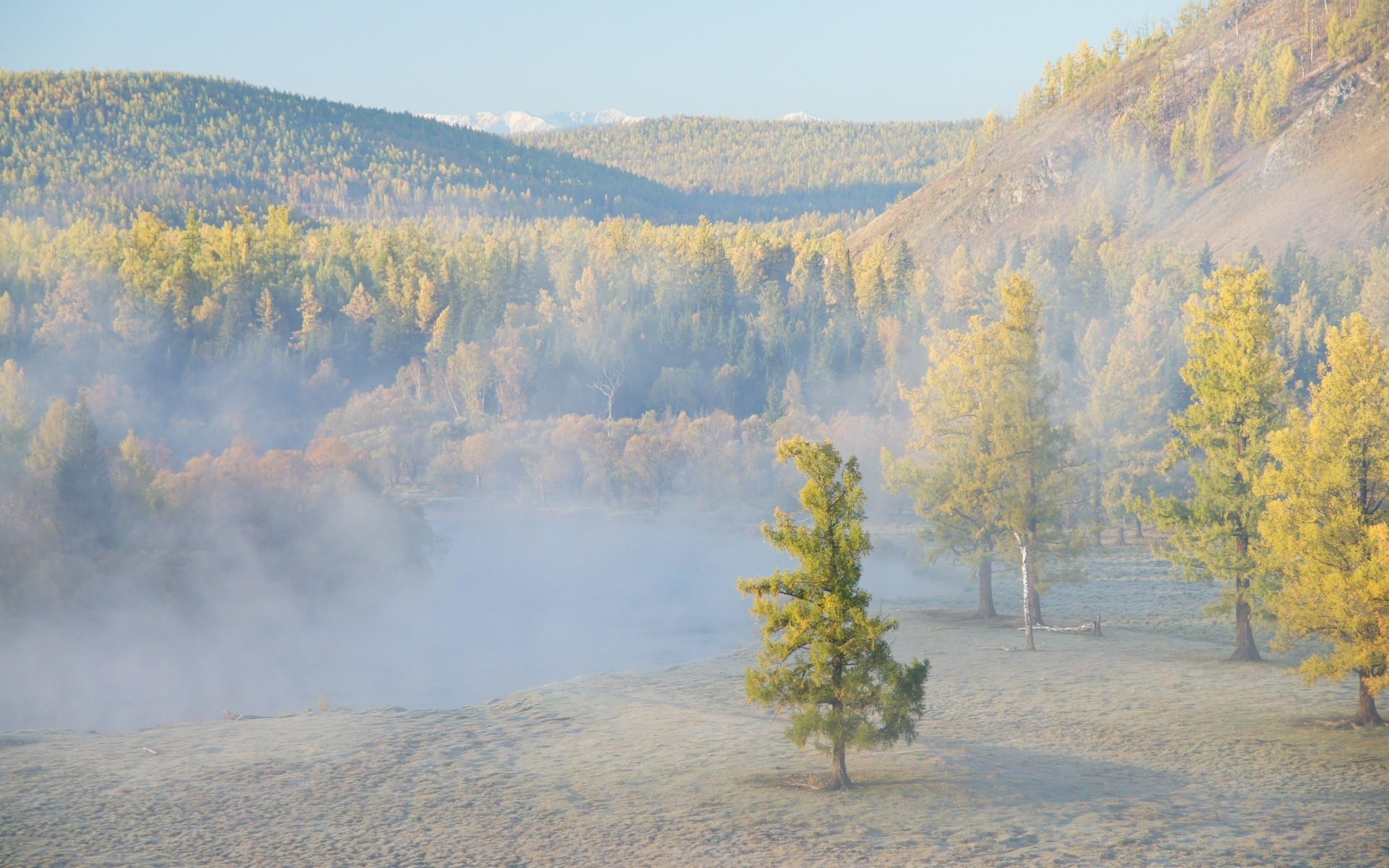 A lonely tree near the lake illuminated by the sunA lonely tree near the lake illuminated by the sun