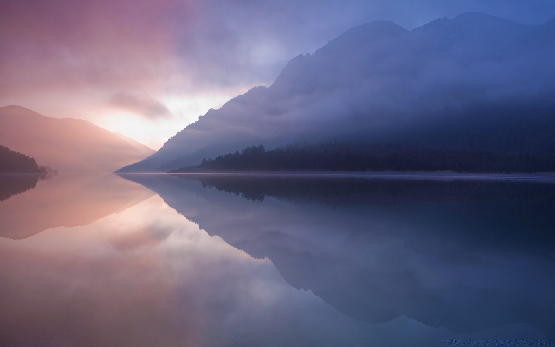 Landscape heavenly sunset on the lake