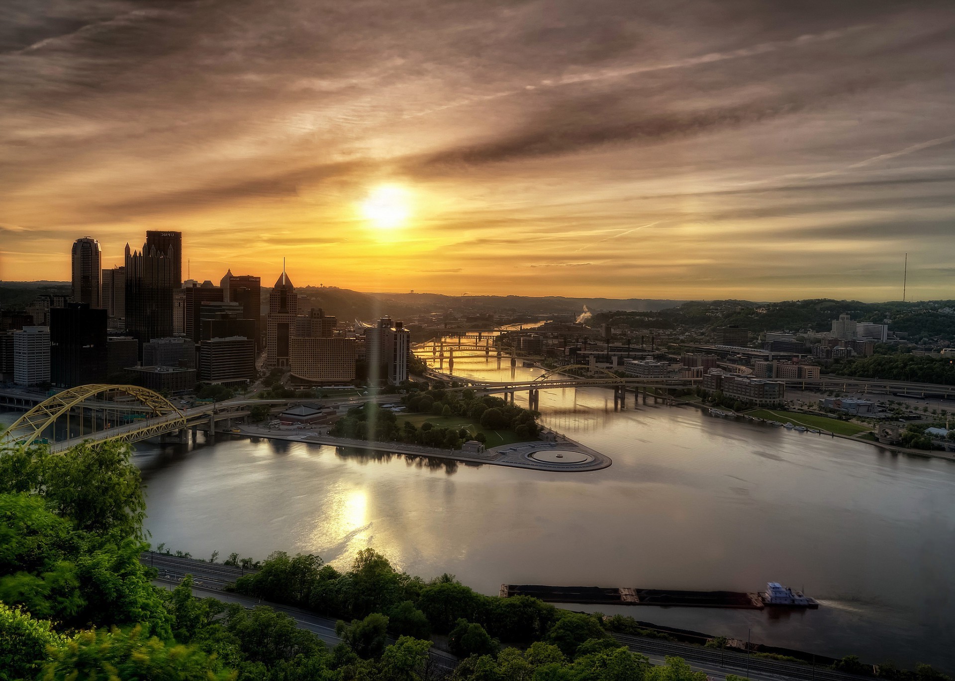 A big city from a bird's eye view with many skyscrapers and high-rise buildings