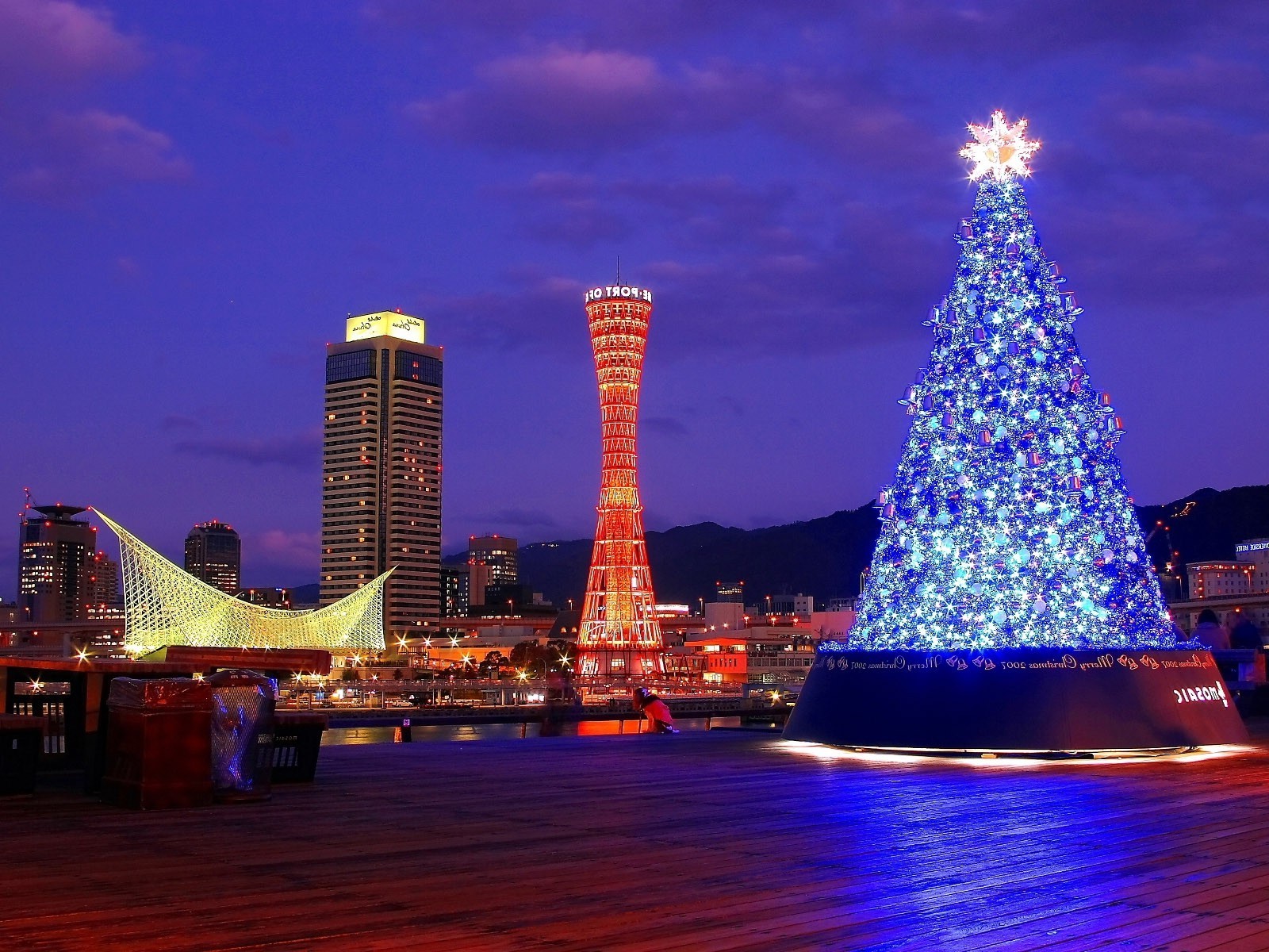 Christmas tree on the background of architecture