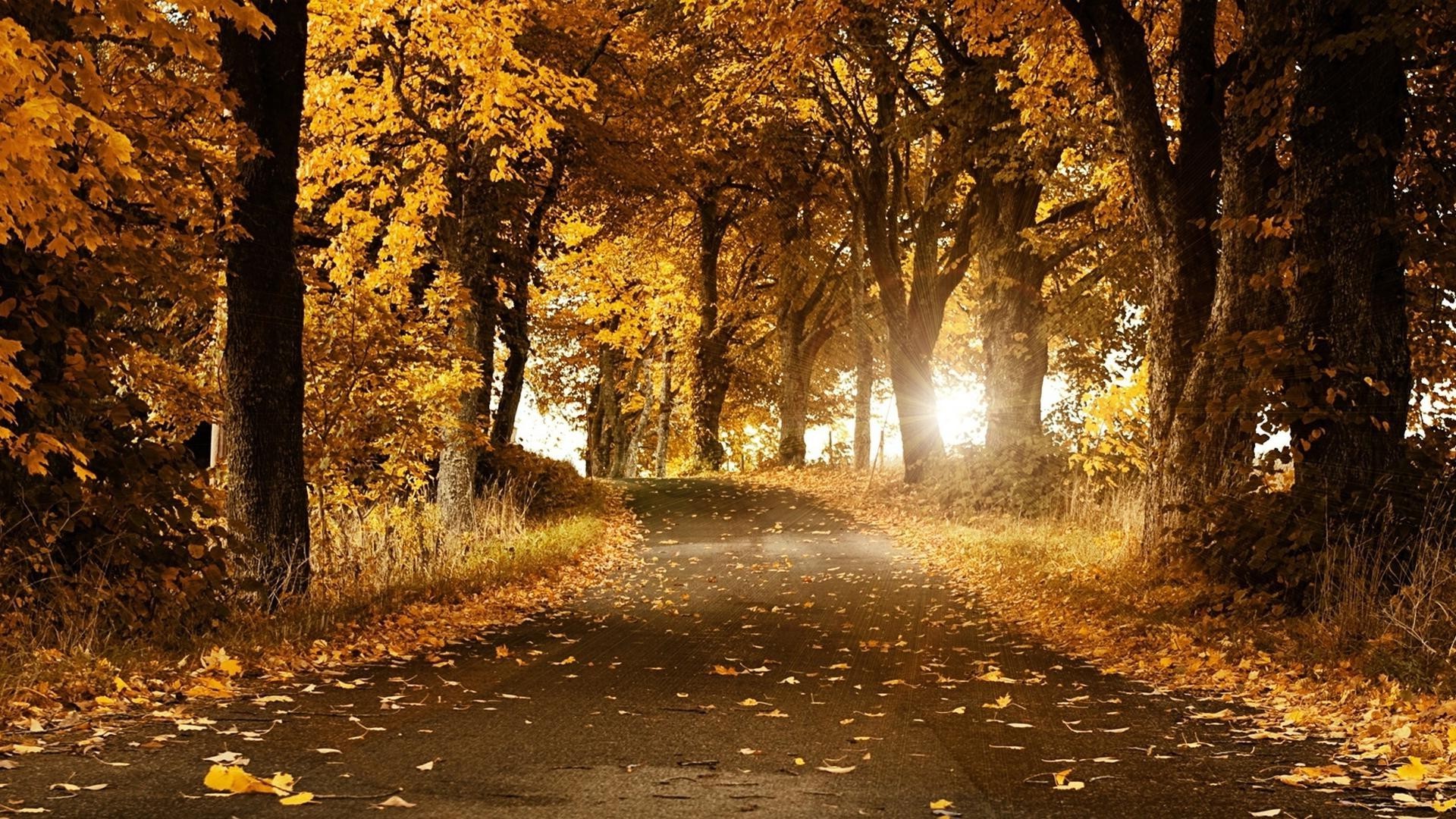 Sunny morning in the autumn forest