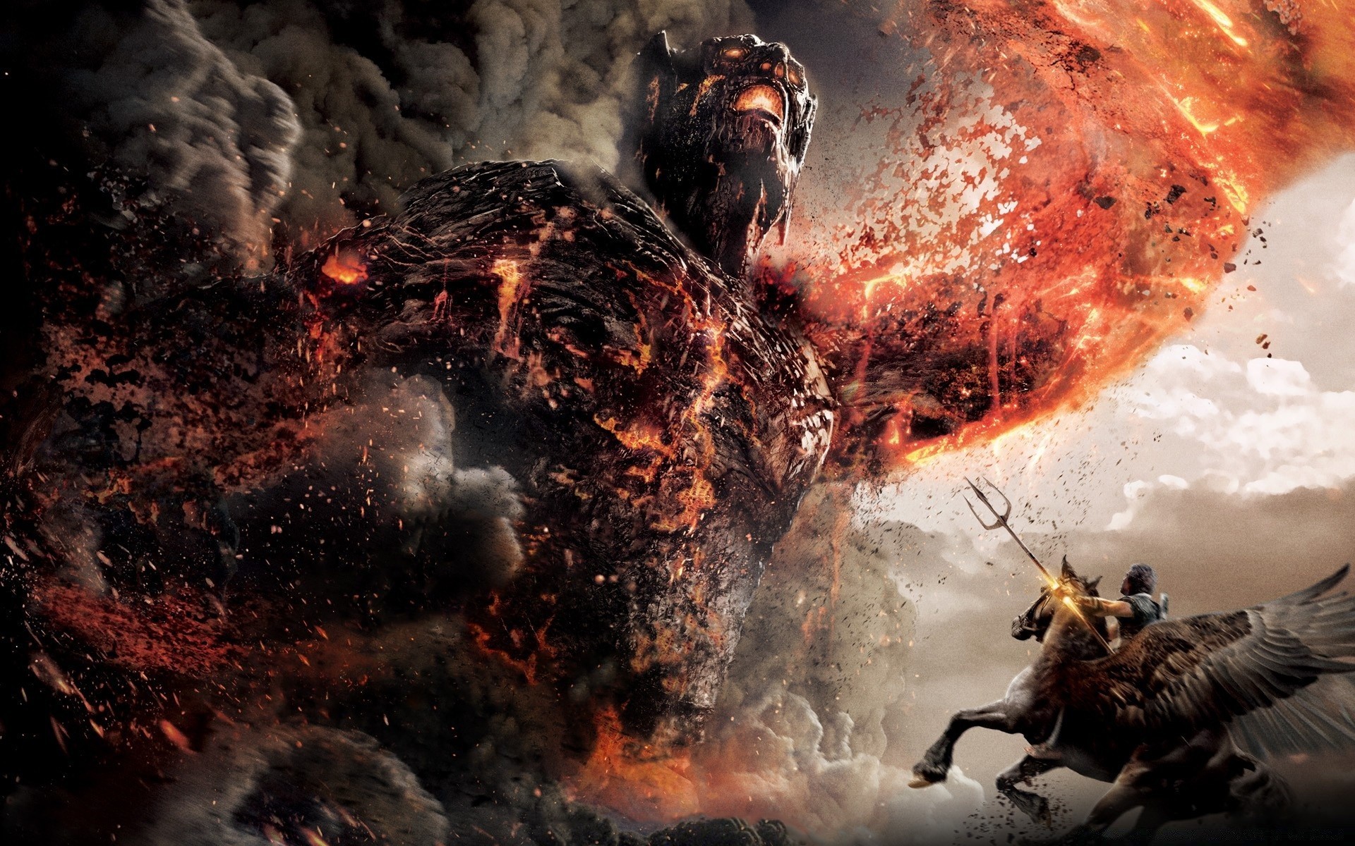 A poster of a movie about Titans with a picture of a warrior and a battle