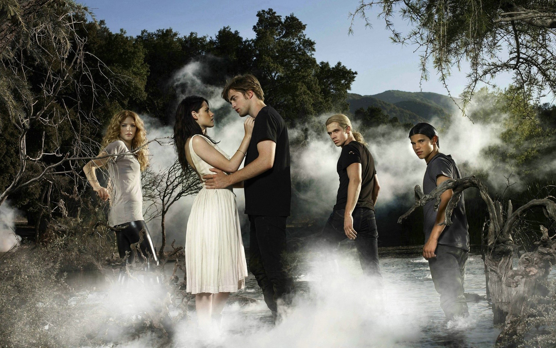 The main characters of the Harry Potter movie are sitting
