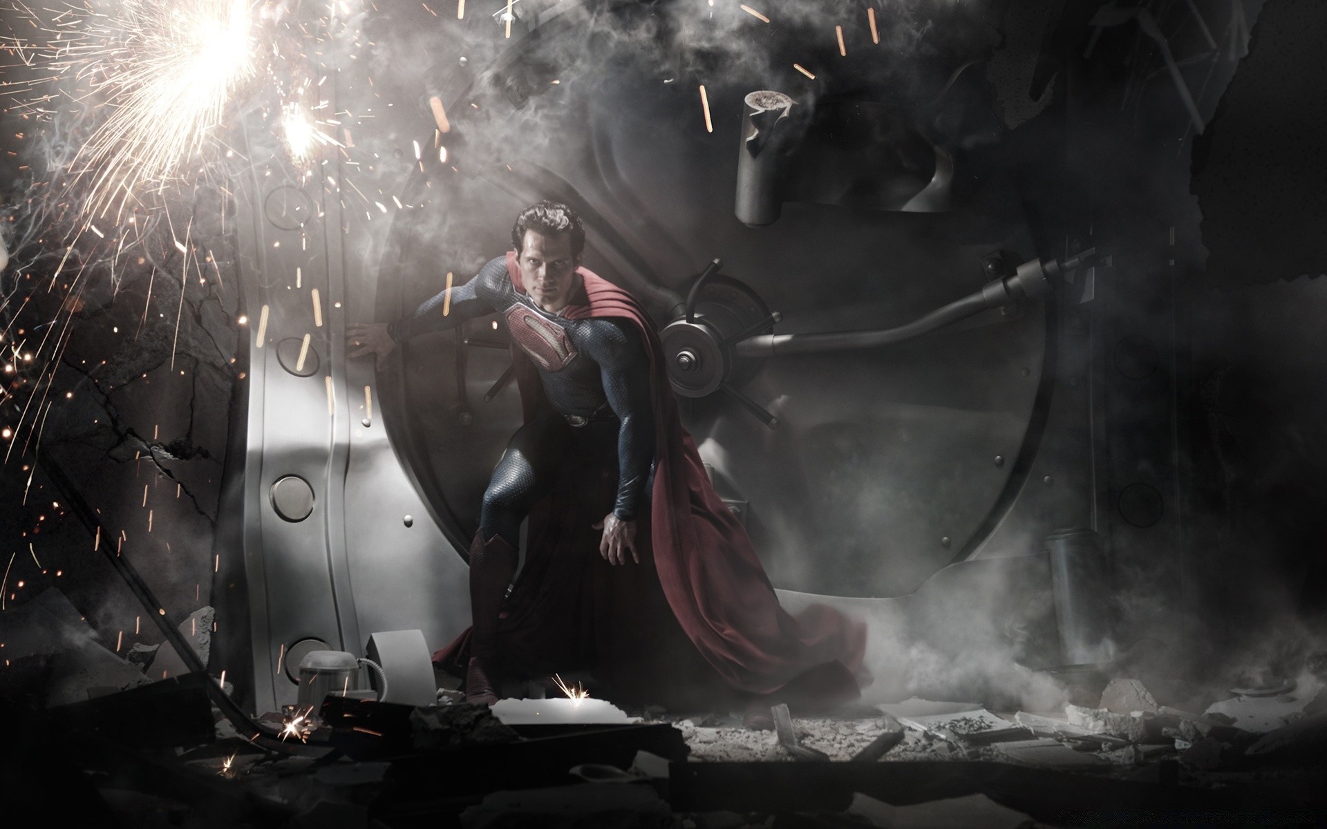 Superman on the background of an exploding bank vaultSuperman on the background of an exploding bank vault