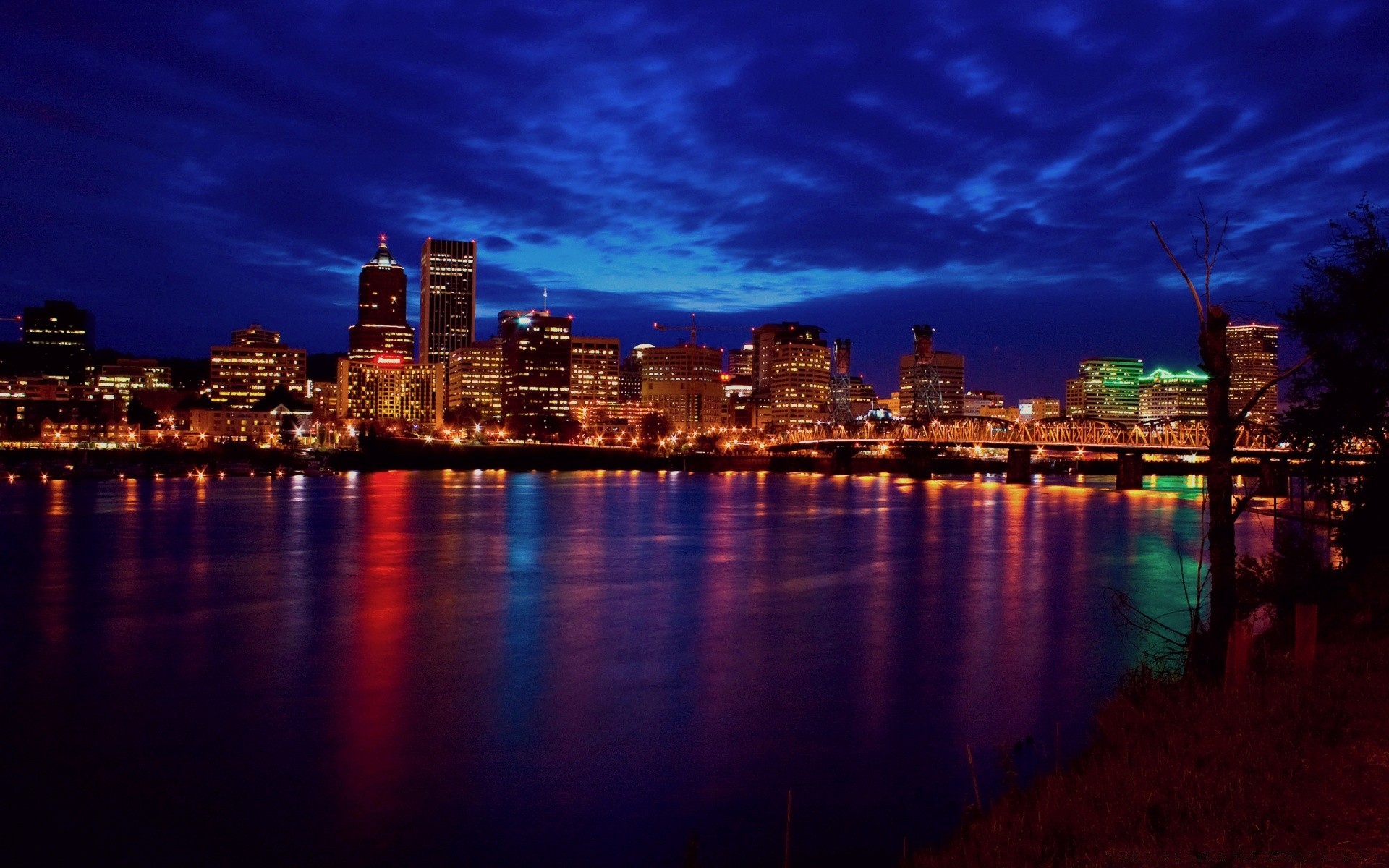 The city is reflected in the water night evening nightlife