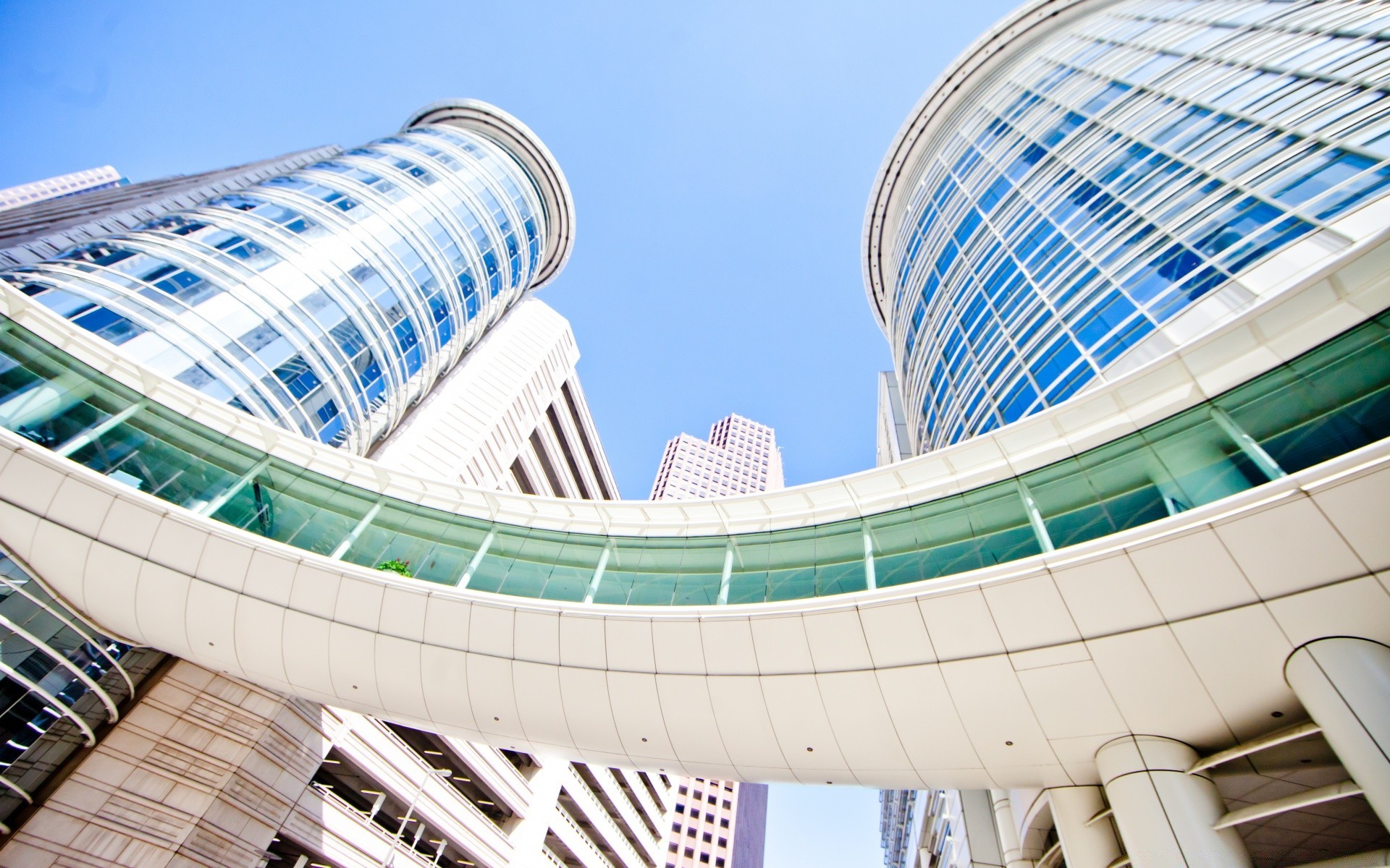 Modern architecture. High-rise buildings with an unusual transition