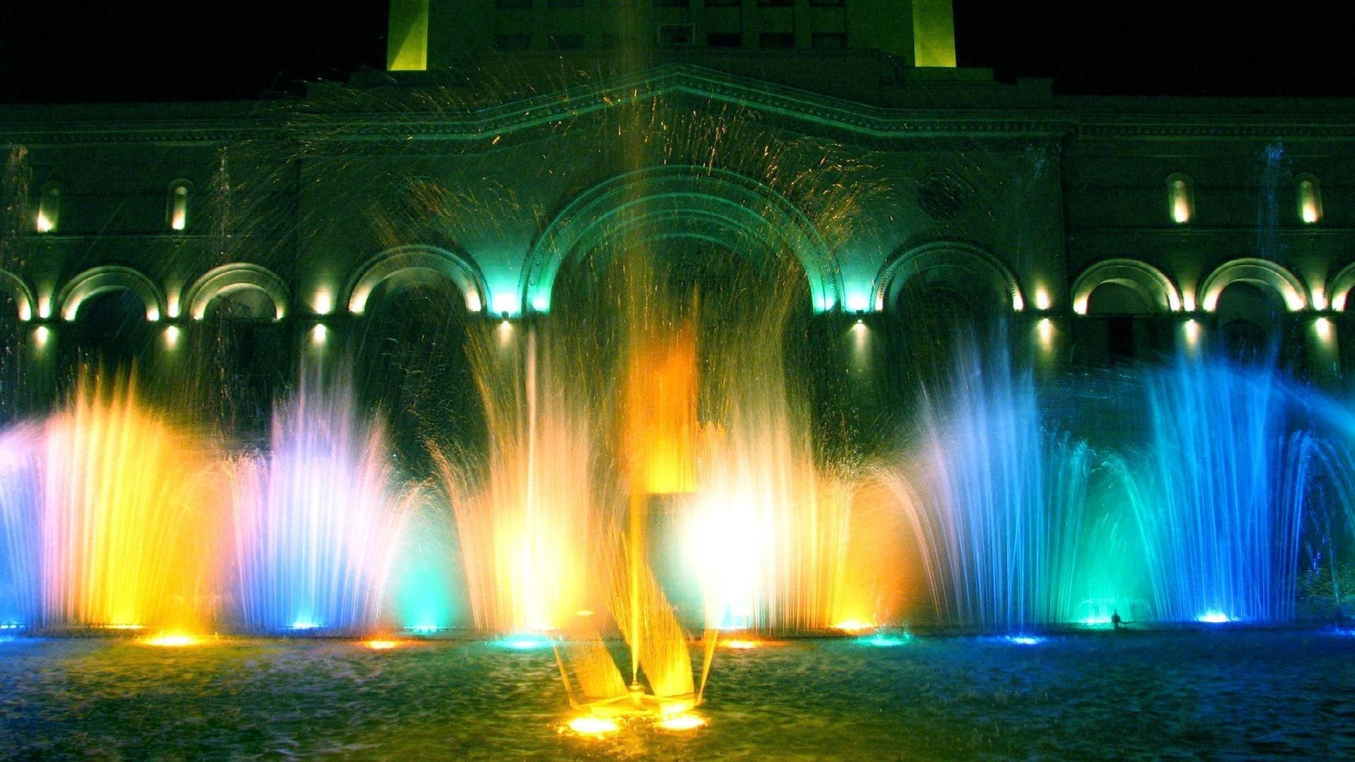 A car with its headlights on against the background of a buildingA car with its headlights on against the background of a building