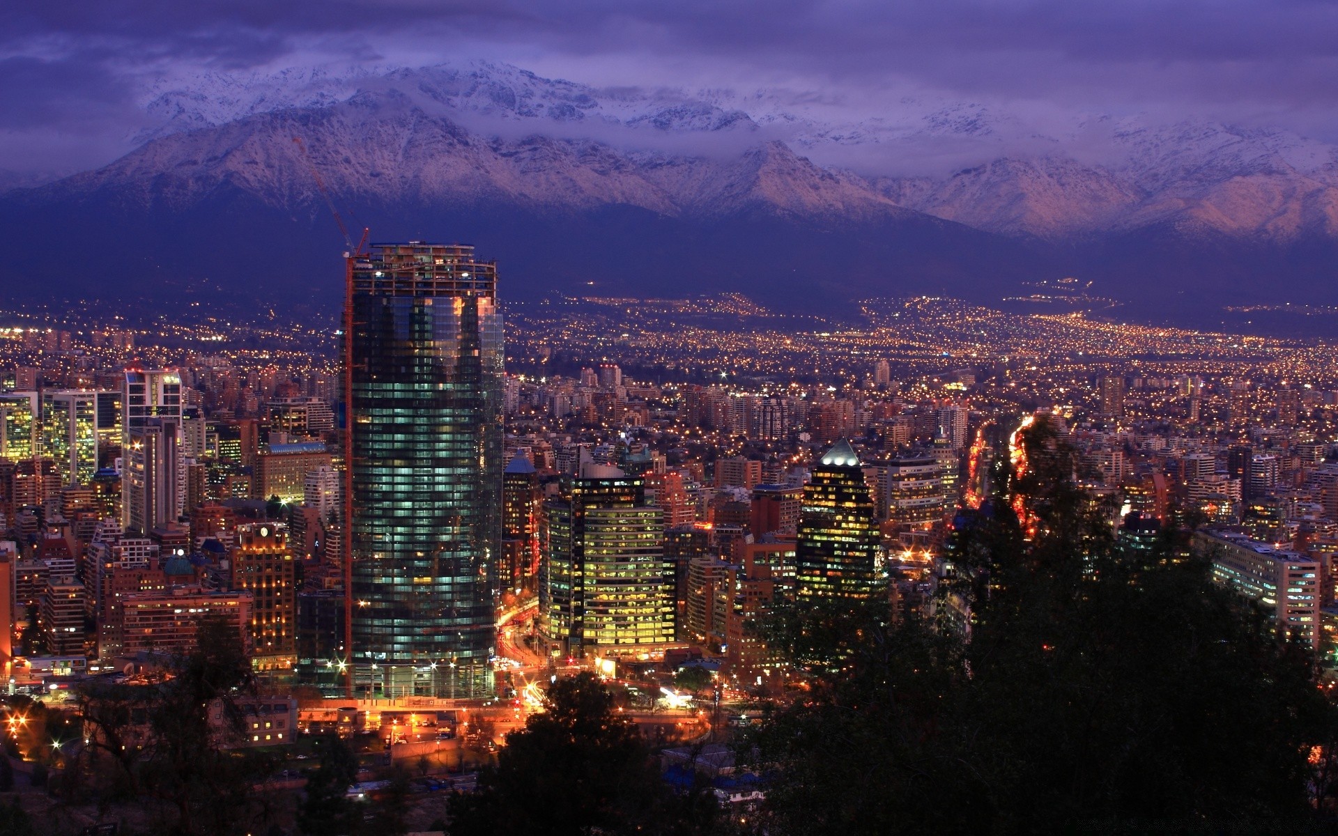 Skyscraper on the background of the city and mountains