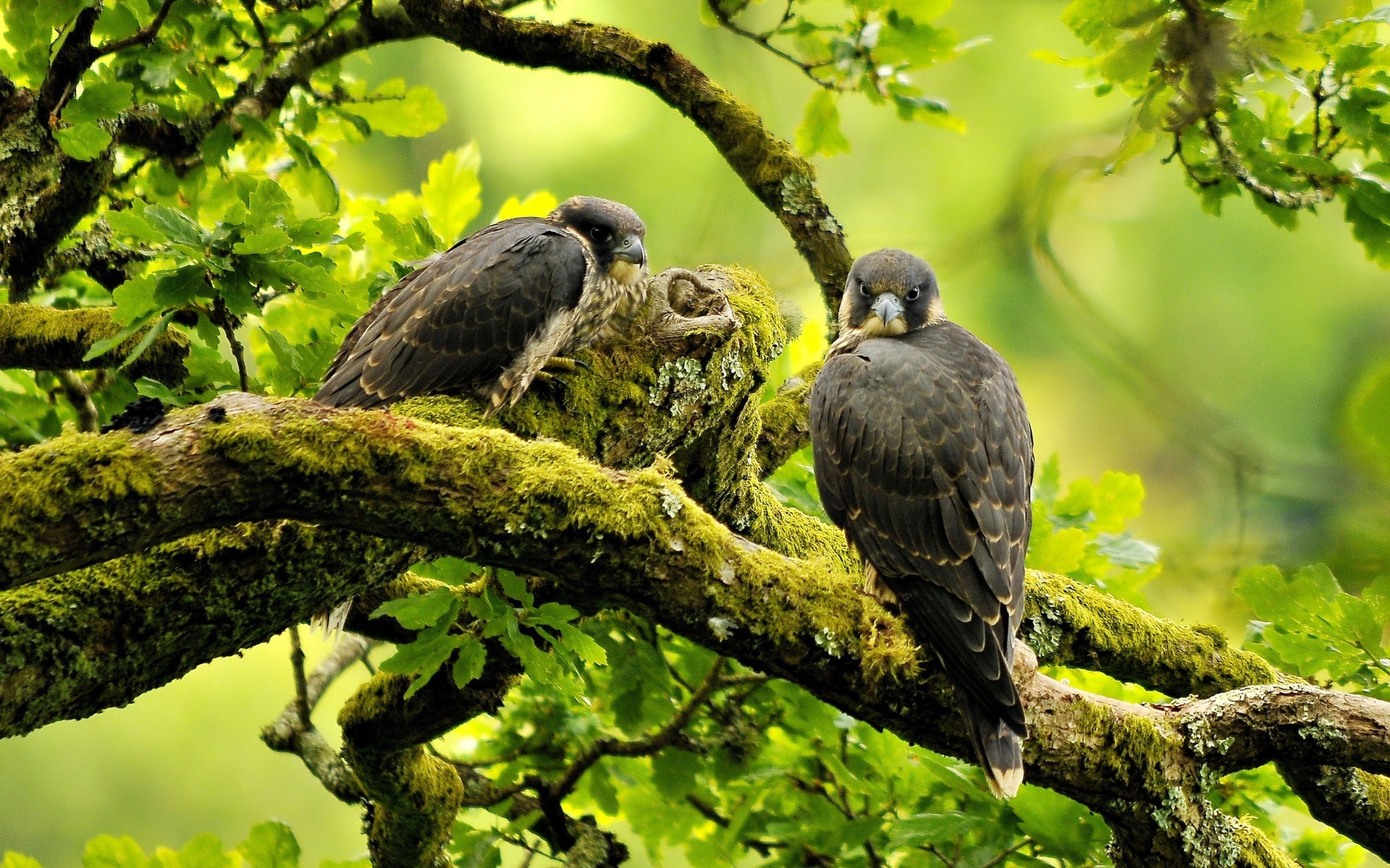 Birds sitting on a tree branch