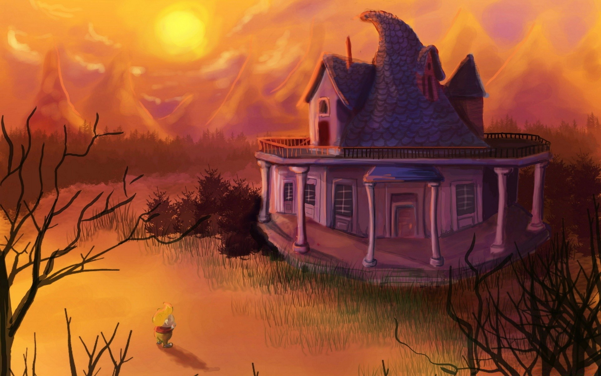 Gingerbread house on the background of orange mountainsGingerbread house on the background of orange mountains