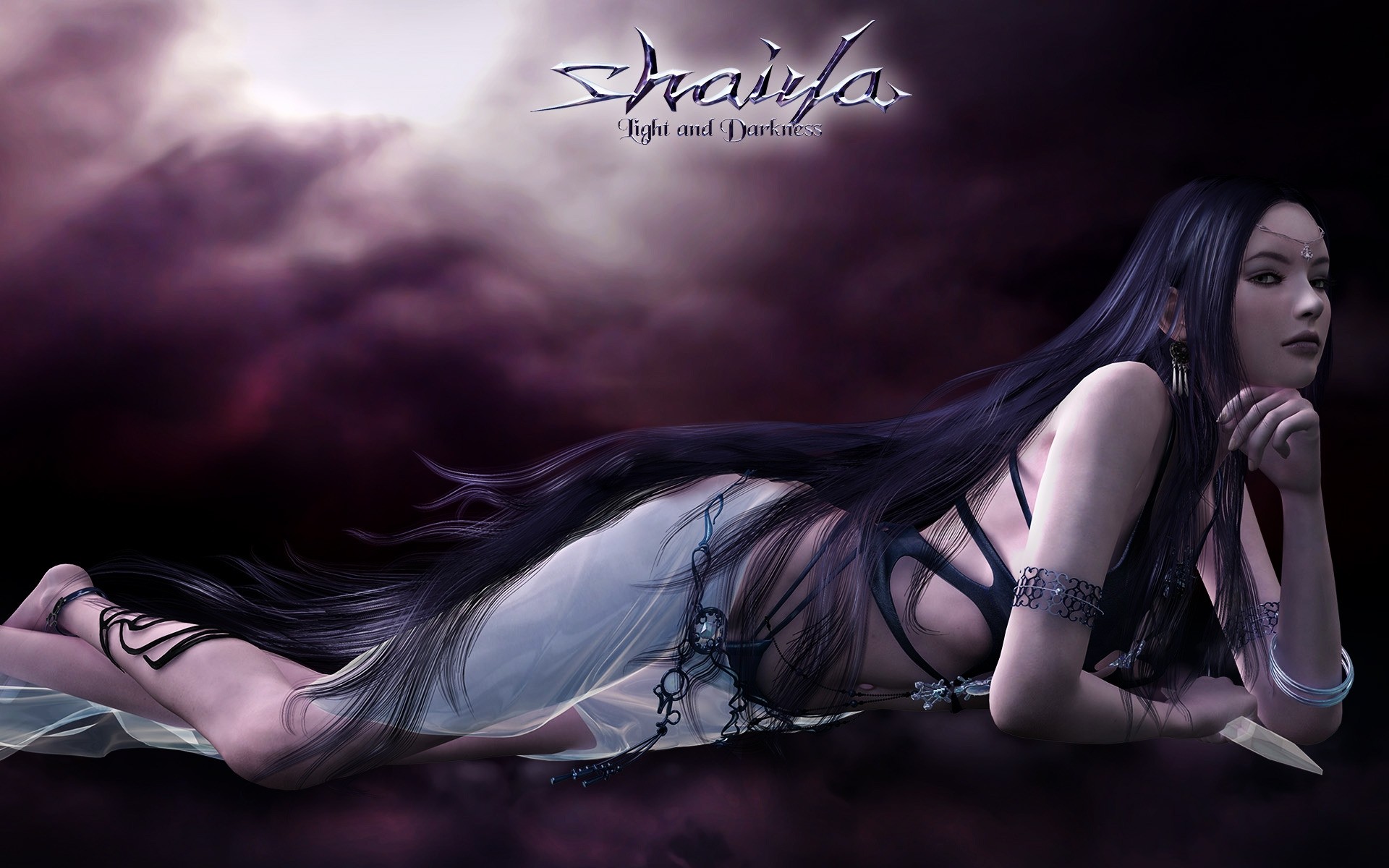 A girl with long hair is lying