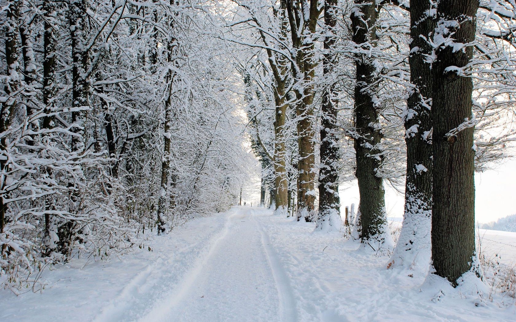 Snow-covered winter path in the forest