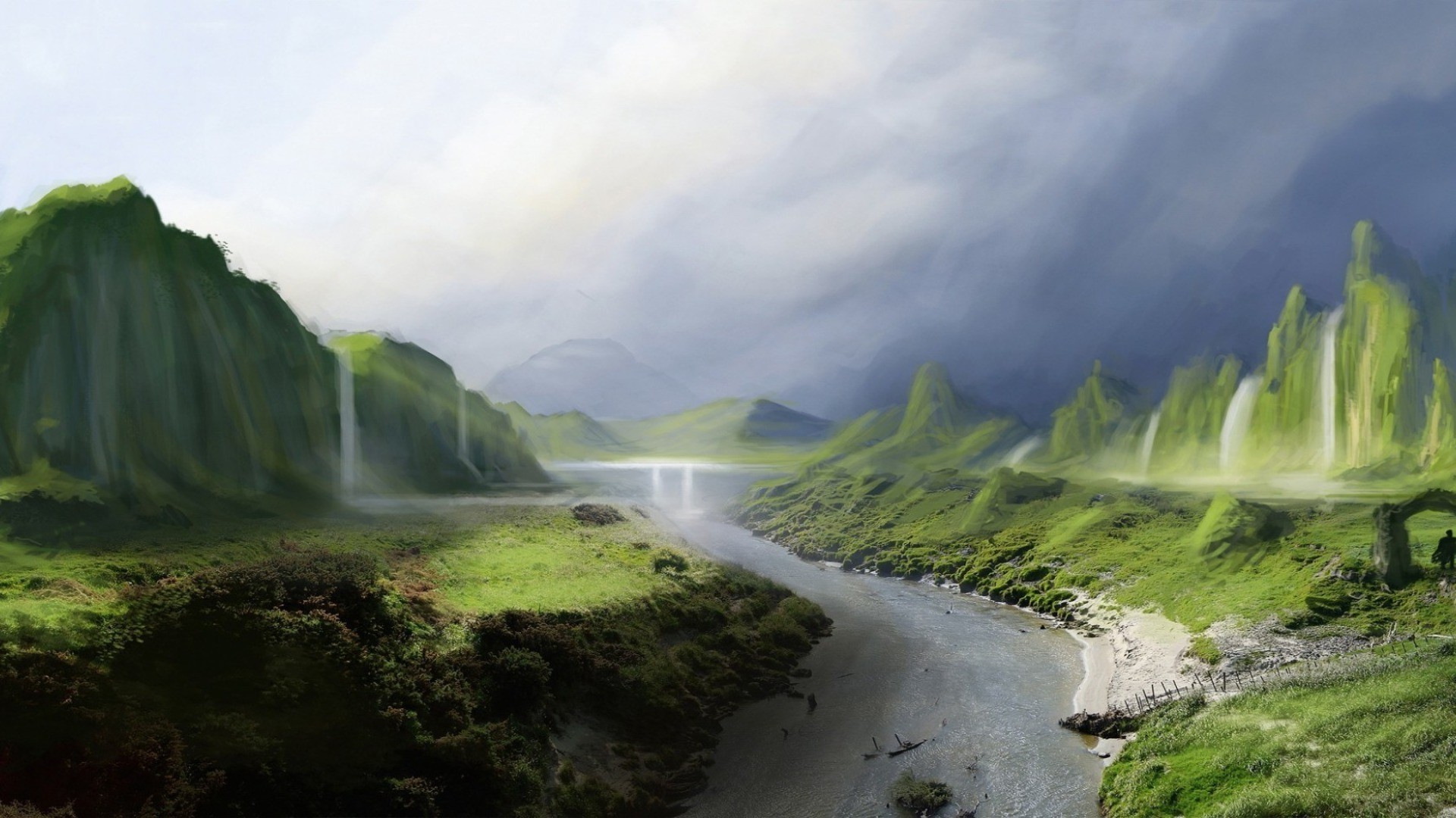 A perfect picture of the landscape of mountains, streams and waterfallsA perfect picture of the landscape of mountains, streams and waterfalls