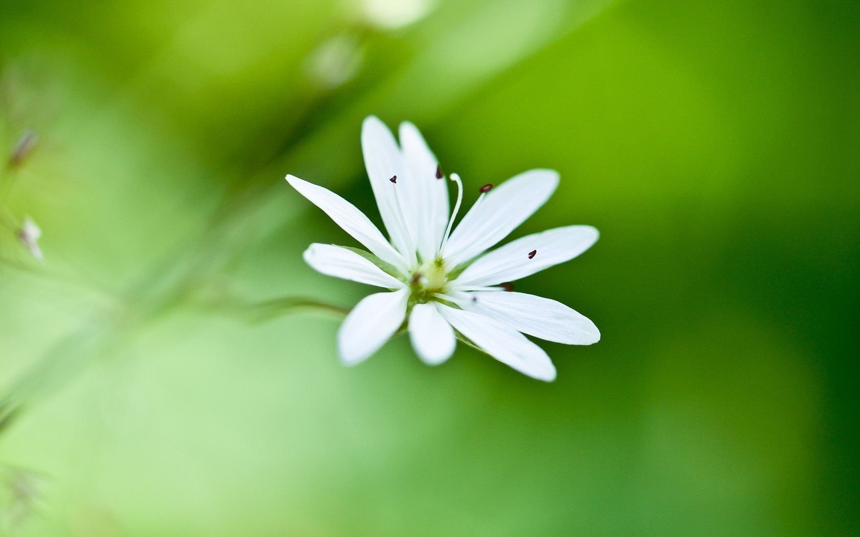 White delicate flower on a green background macro-shooting