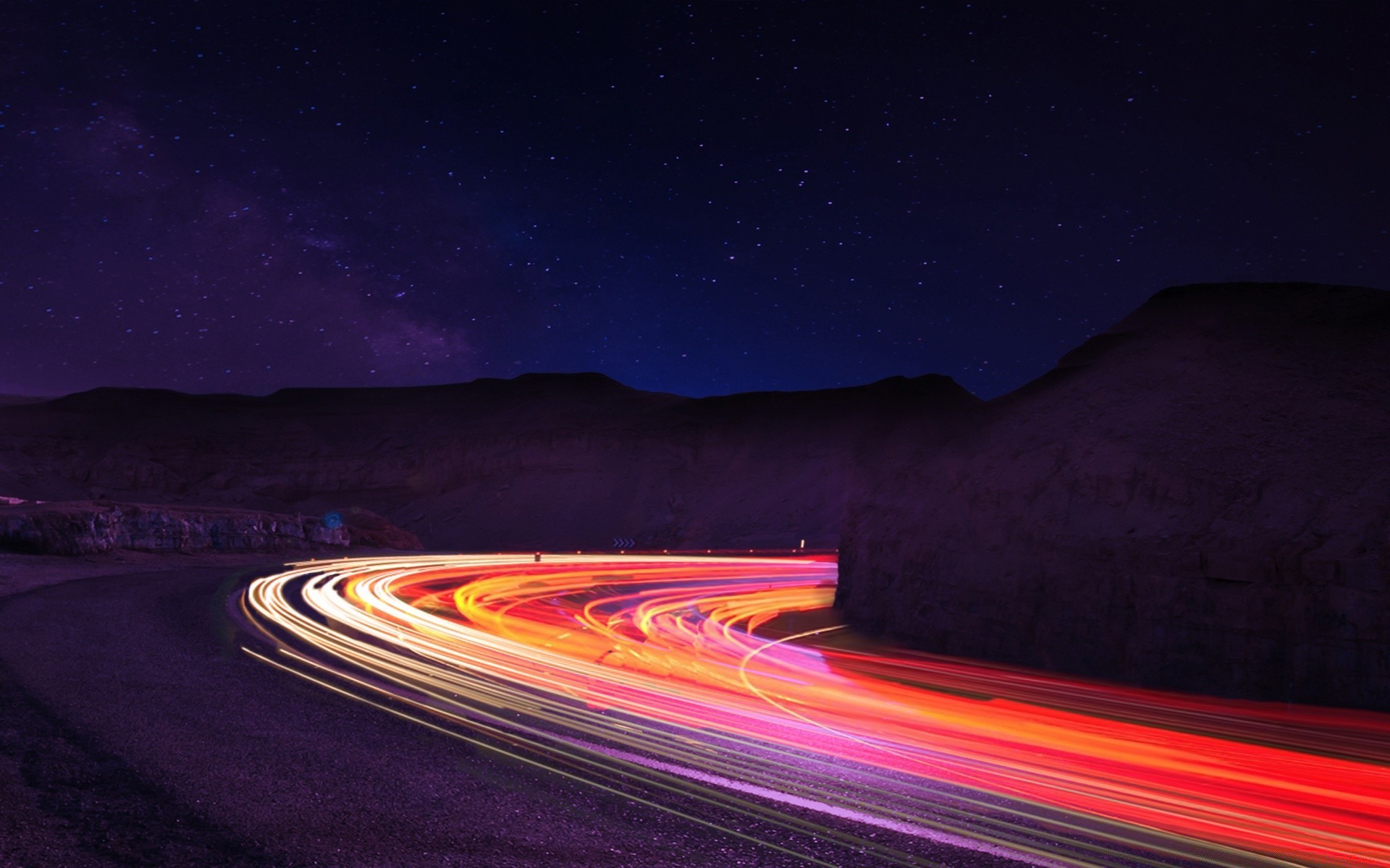 Glowing highway at nightfall