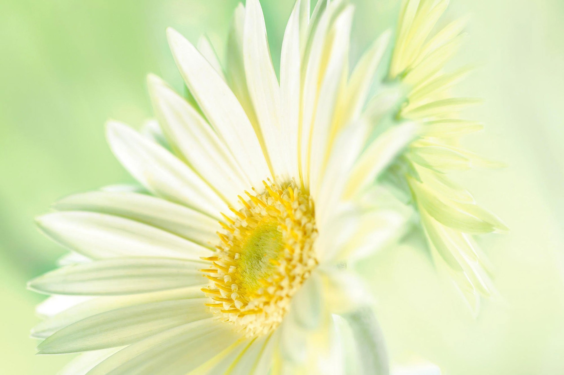 Delicate white flower on a green background
