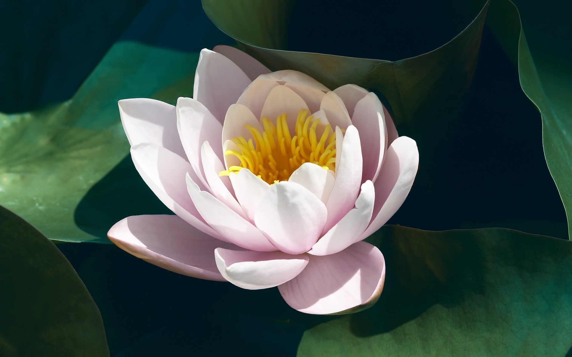 Flowers and leaves on the water in summer