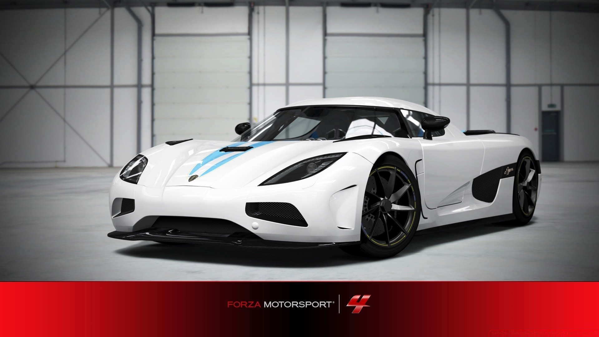 Blue racing car in the hangar