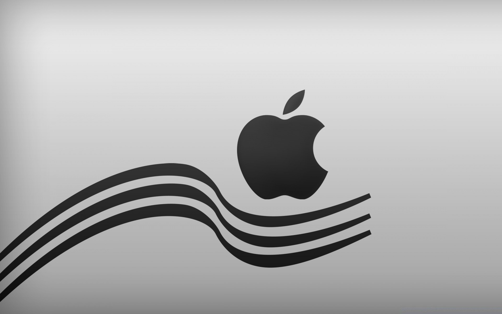 Apple logo with a glowing edge against a dark blue sky and patterns