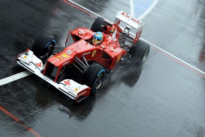Racing car on wet asphalt