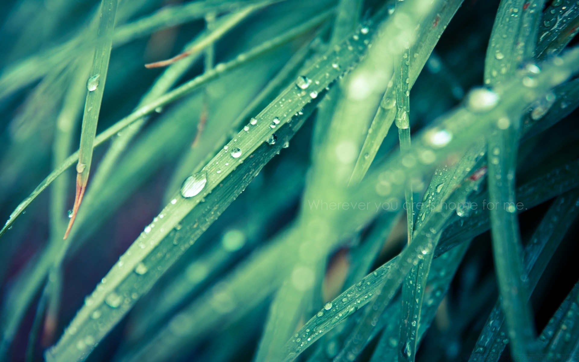 Drops running down the grass. Dew. Rain