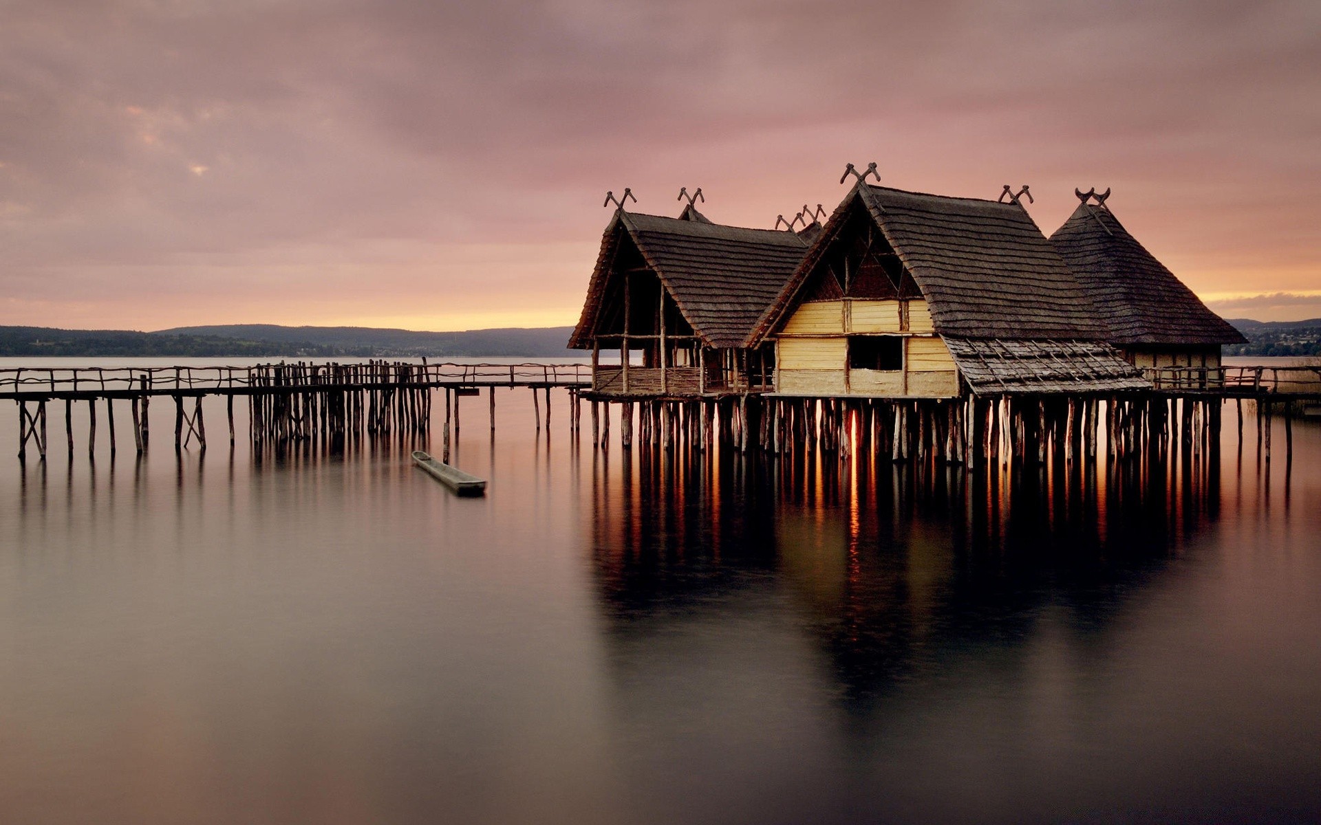 Forest landscape on the background of a crystal clear lake. Reflection in the water of forest pines