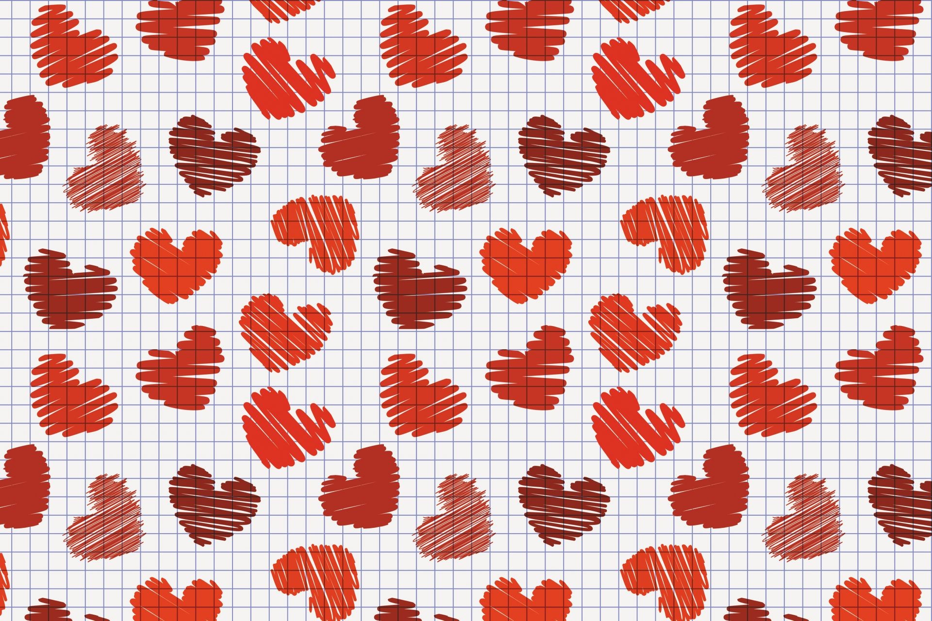 Red hearts drawn with a marker in a notebook