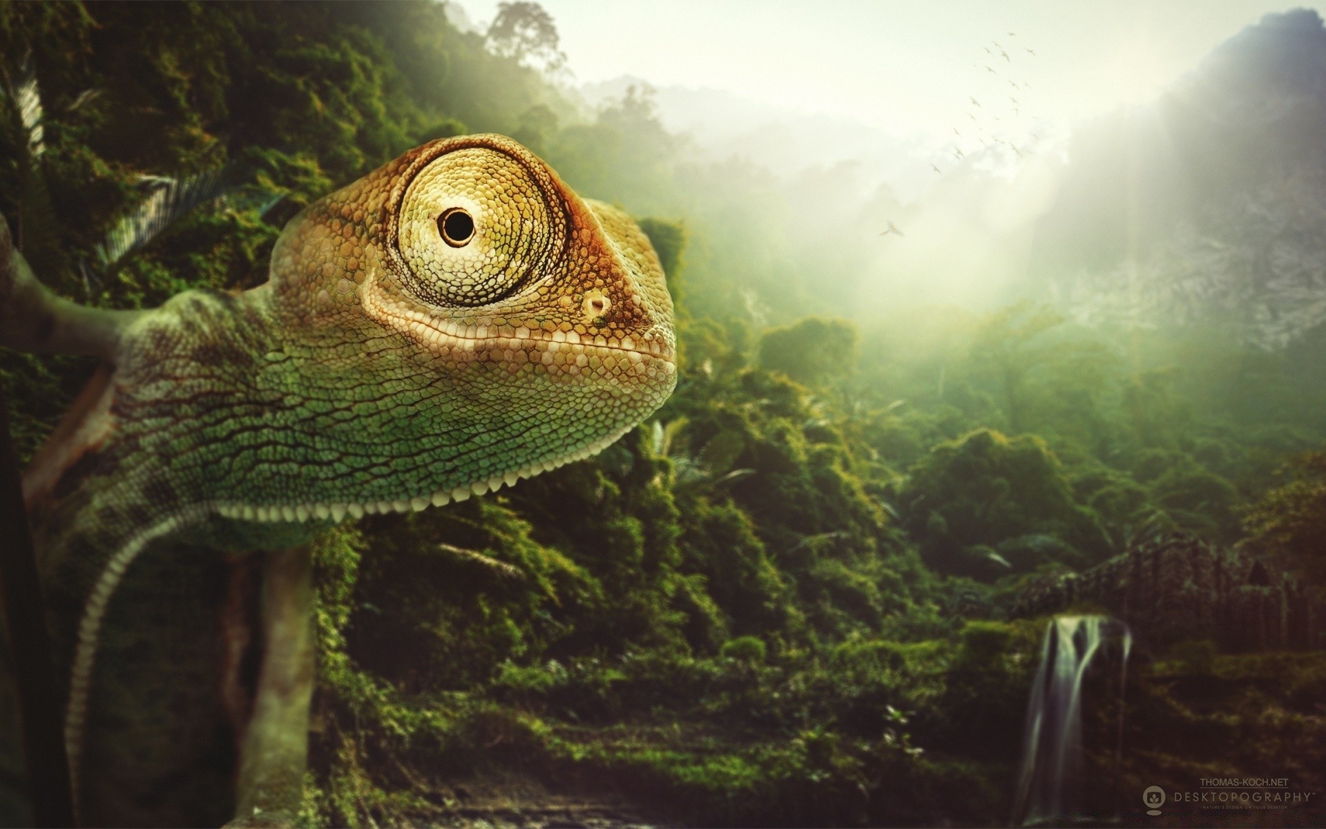 The tropical chameleon bulged its eyes, an animal