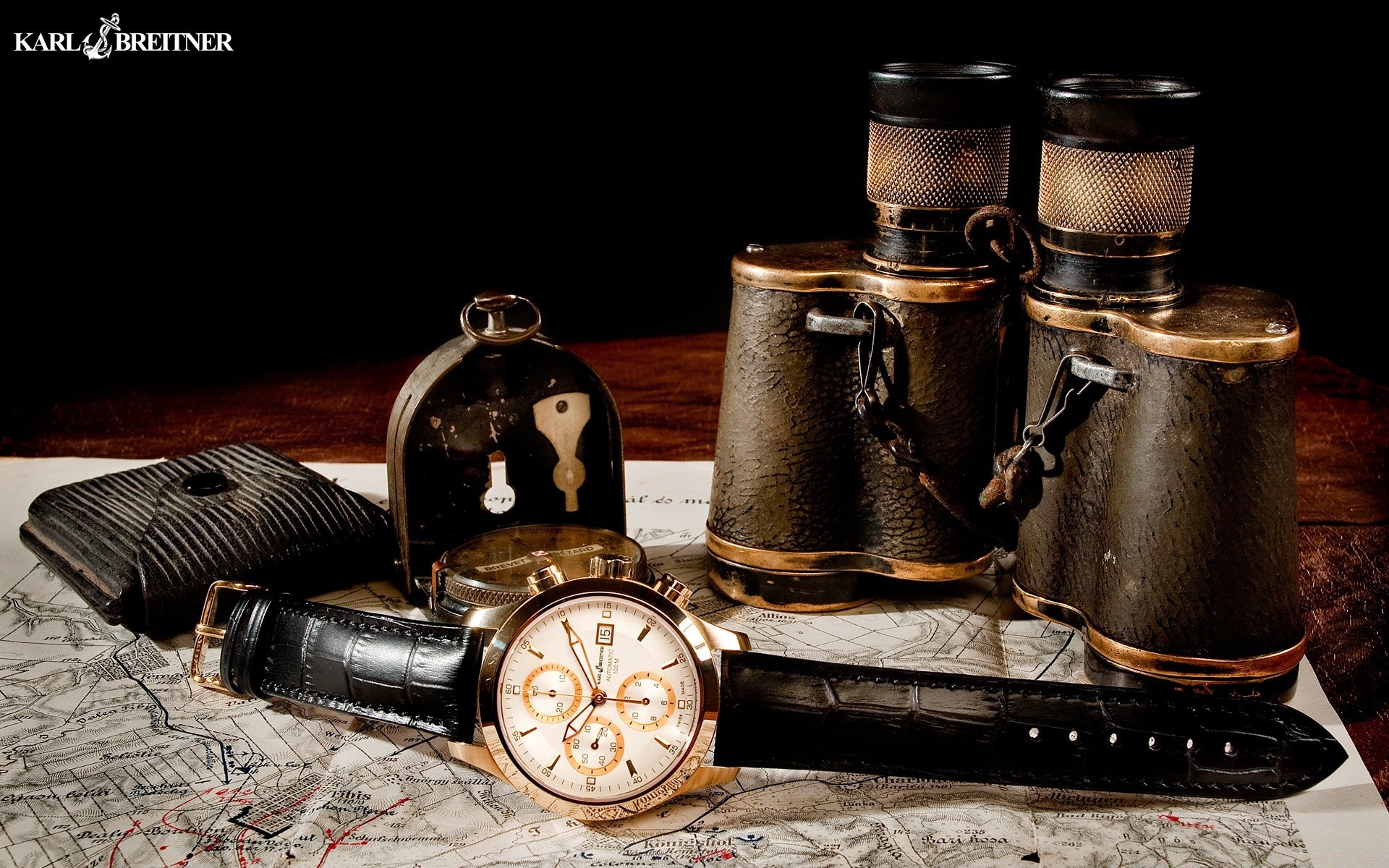 Antique Retro objects on the brass table