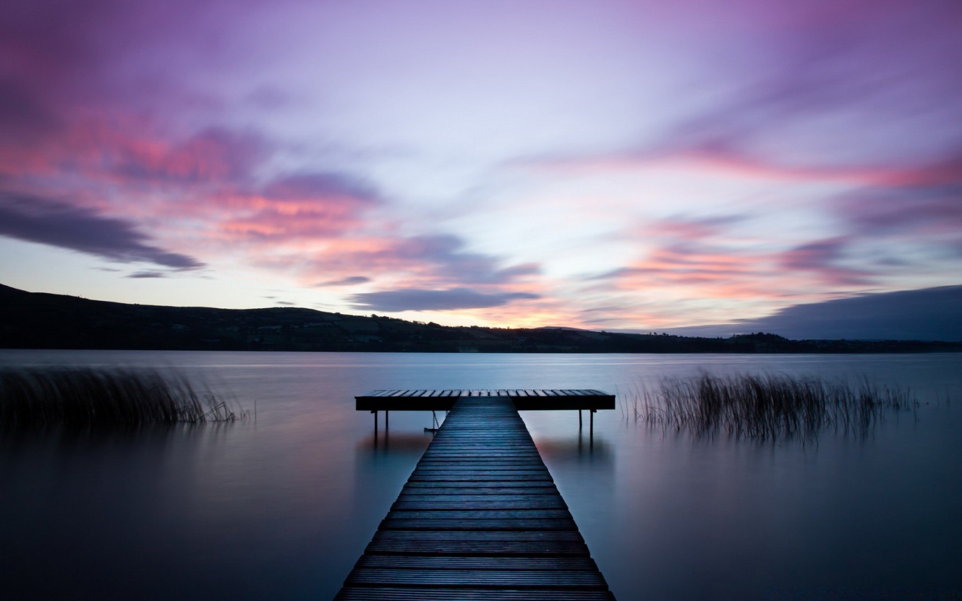 River pier in a crimson sunset