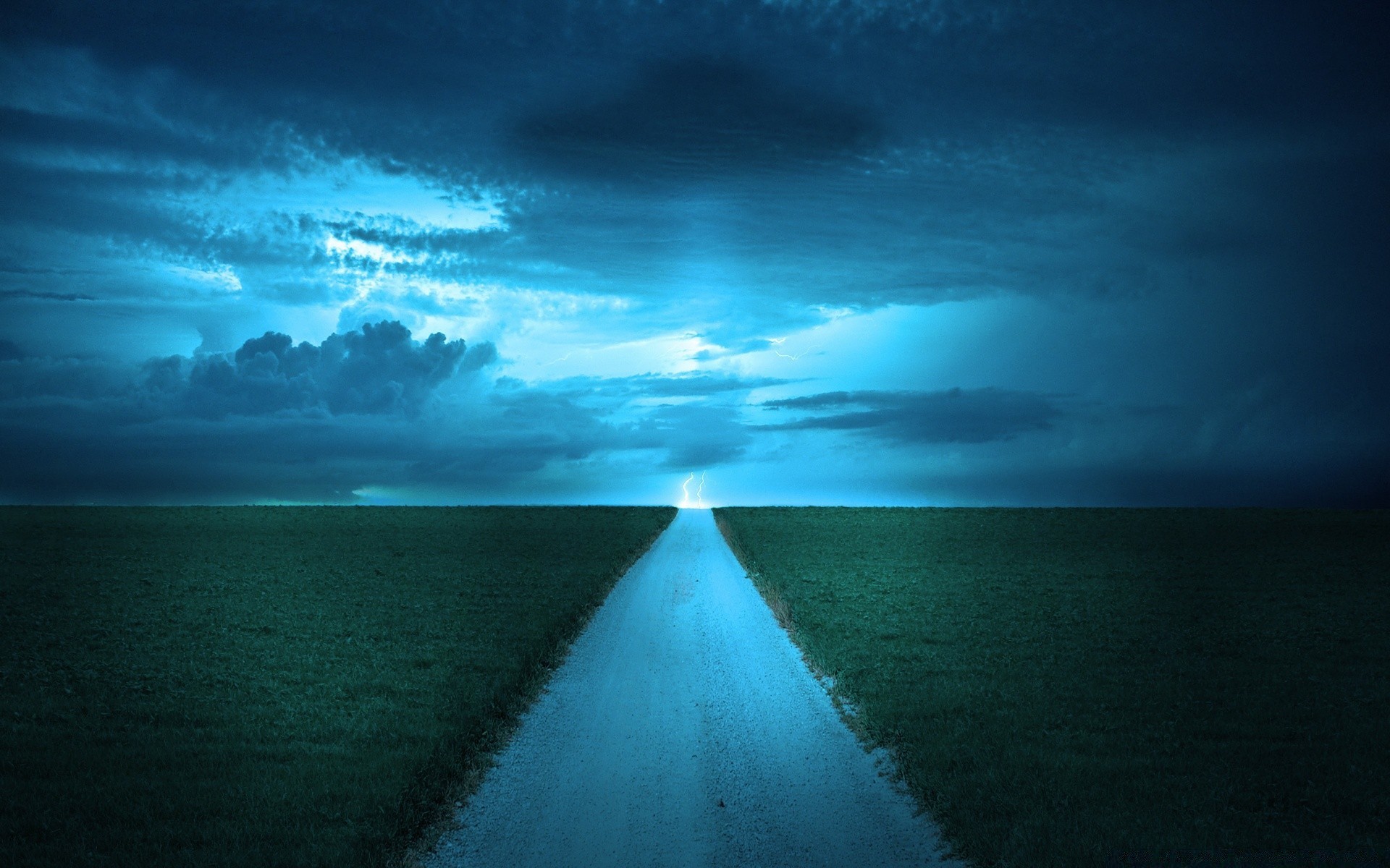 An empty road in the middle of a field