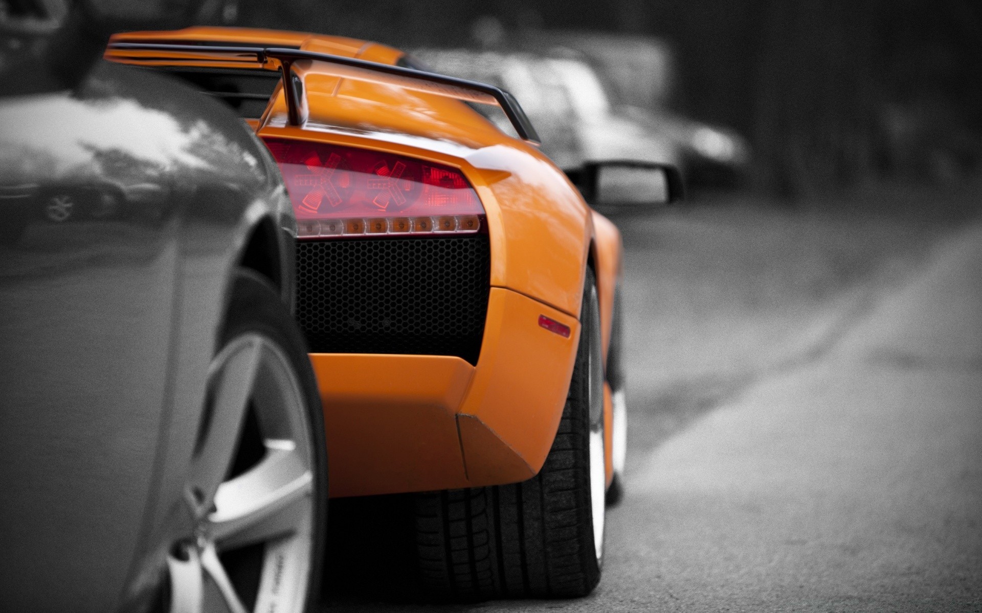 Orange racing car on the road