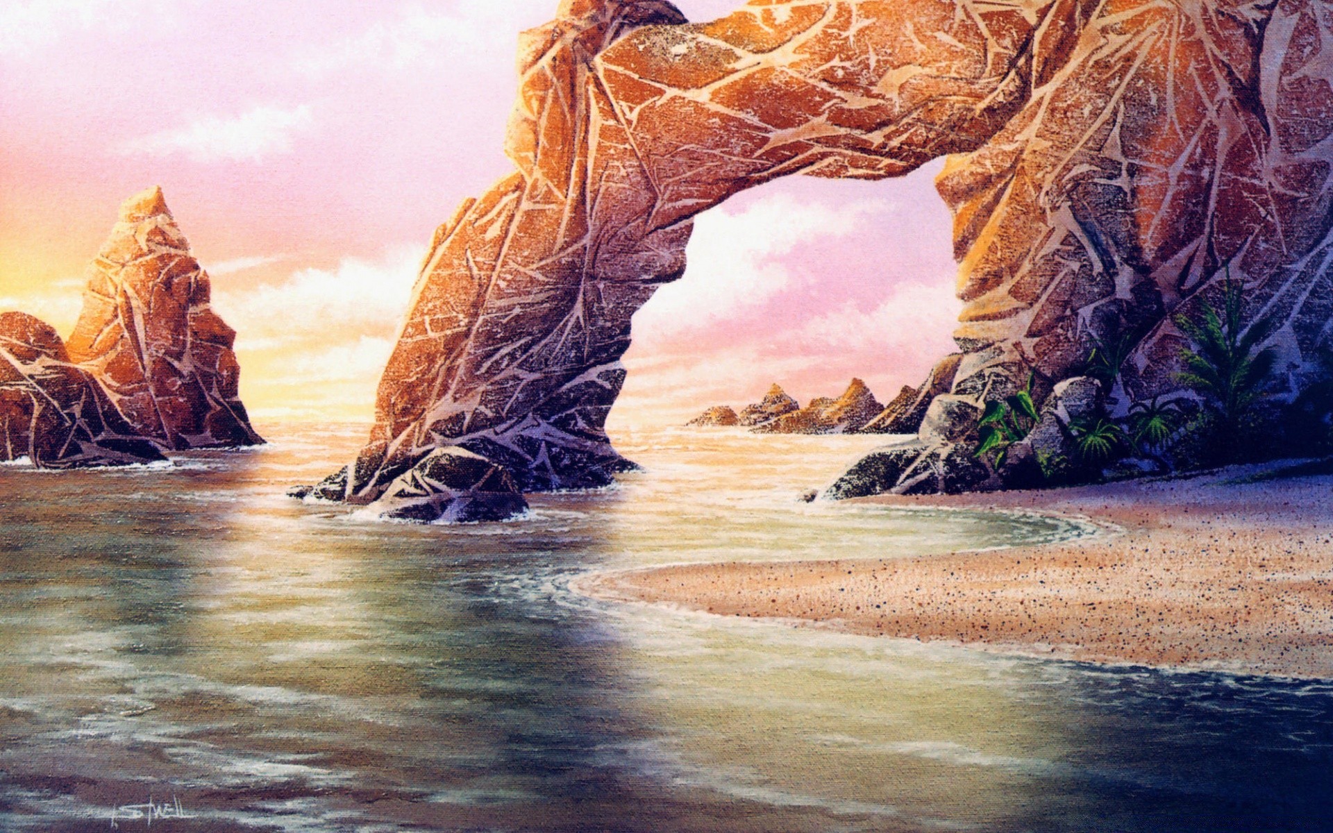 Beautiful rock at sunset art
