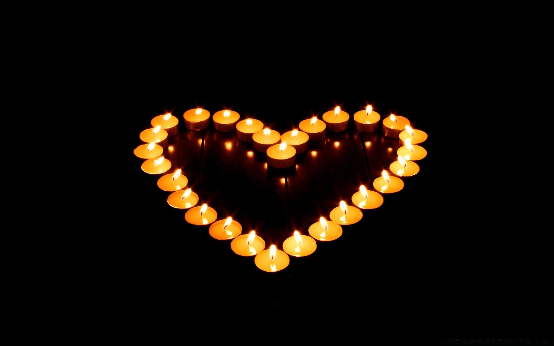 Romantic heart made of candles in the dark